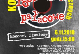 KONKURS ZESPOŁÓW MUZYCZNYCH 6 listopada został rozstrzygnięty konkurs trwający od maja br.    ROCKOWANIA PAŁACOWE  - Ogólnopolski Festiwal Zespołów Muzycznych  2010   JURY w składzie:  Grzegorz Kapołka,  Bronisław Duży,  Grzegorz Poliszak, Małgorzata Orzeł,  Andrzej Rusek nagrodziło zespoły: I miejsce    ABSYNTH  - Tarnowskie Góry  - nagroda w wys. 5.000,- zł.    II miejsce  MBQ  - Dąbrowa Górnicza  -