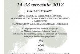 VI Międzynarodowy Konkurs Muzyczny im. Michała Spisaka Termin: 14-23 września 2012 r. Miejsce: Dąbrowa Górnicza,  Akademia Muzyczna w Katowicach Konkurs w specjalnościach: flet, obój, fagot Projekt współfinansowany przez MKiDN.   VI Międzynarodowy Konkurs Muzyczny im. Michała Spisaka w Dąbrowie Górniczej jest organizowany przez Urząd Miejski w Dąbrowie Górniczej, Pałac Kultury Zagłębia w Dąbrowie Górniczej oraz Akademię Muzyczną im. Karola Szymanowskiego w Katowicach, która sprawuje także opiekę merytoryczną.