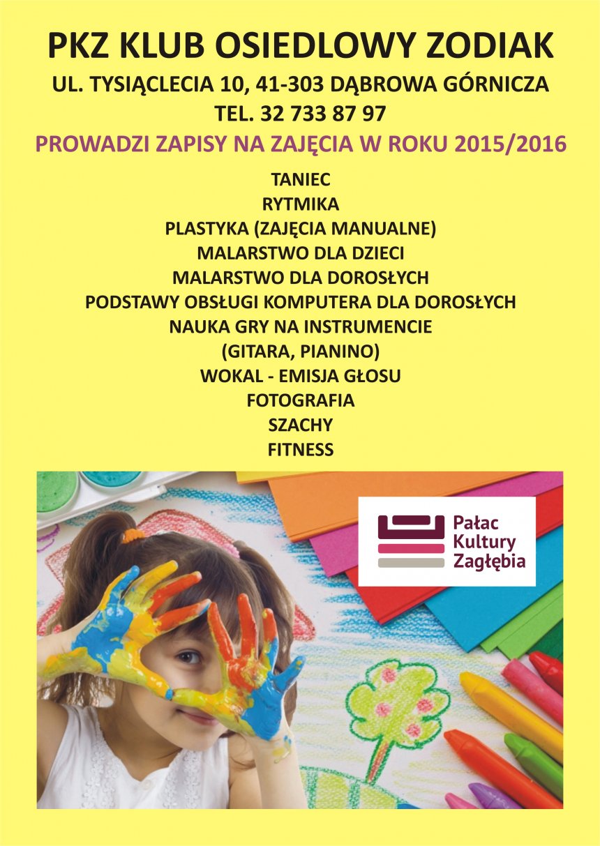 Serdecznie zapraszamy do zapoznania się z ofertą zajęć klubu Zodiak w sezonie kulturalno-oświatowym 2015/2016.