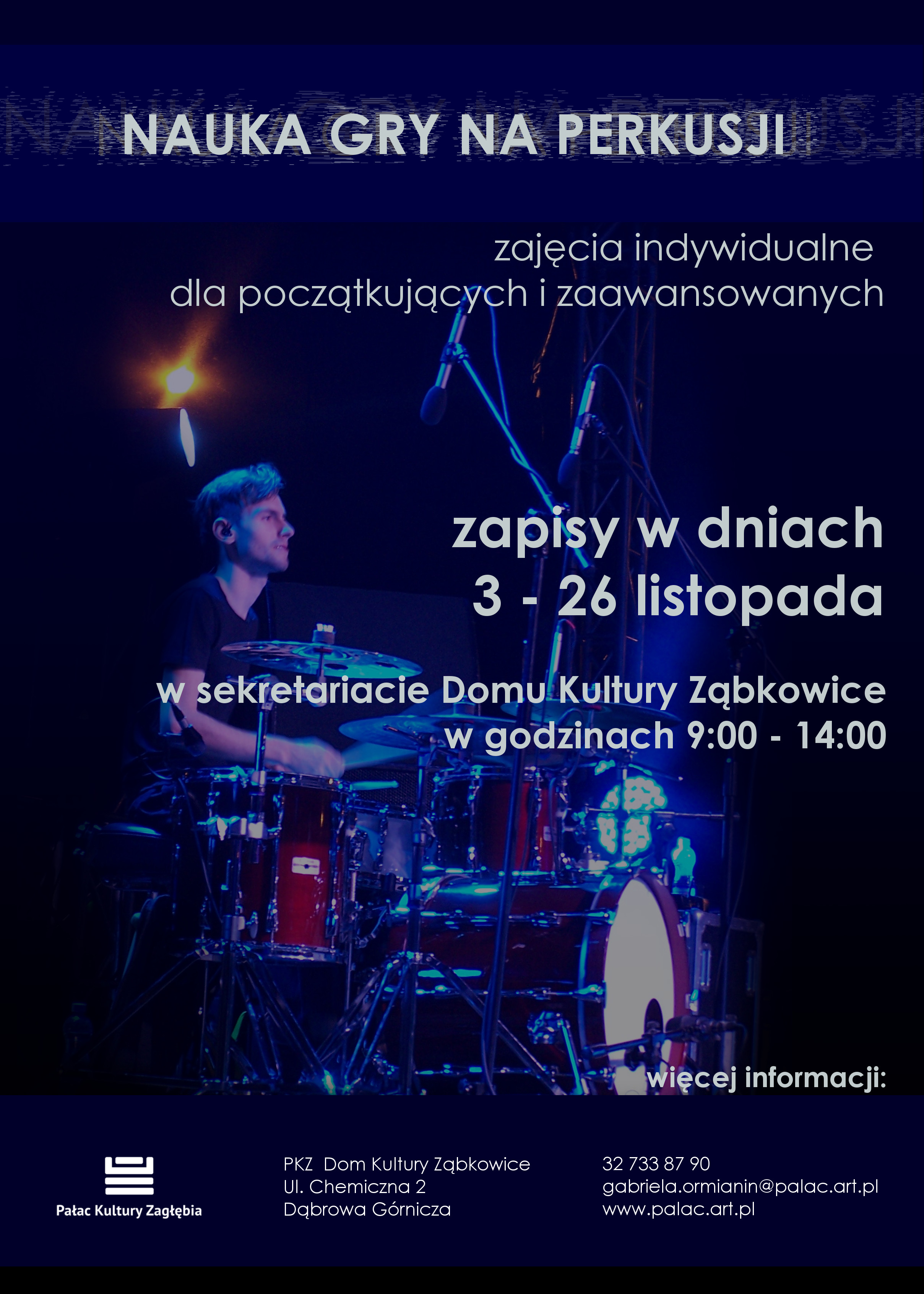 Dom Kultury Ząbkowice zaprasza wszystkich chętnych (początkujących oraz zaawansowanych) na naukę gry na perkusji.