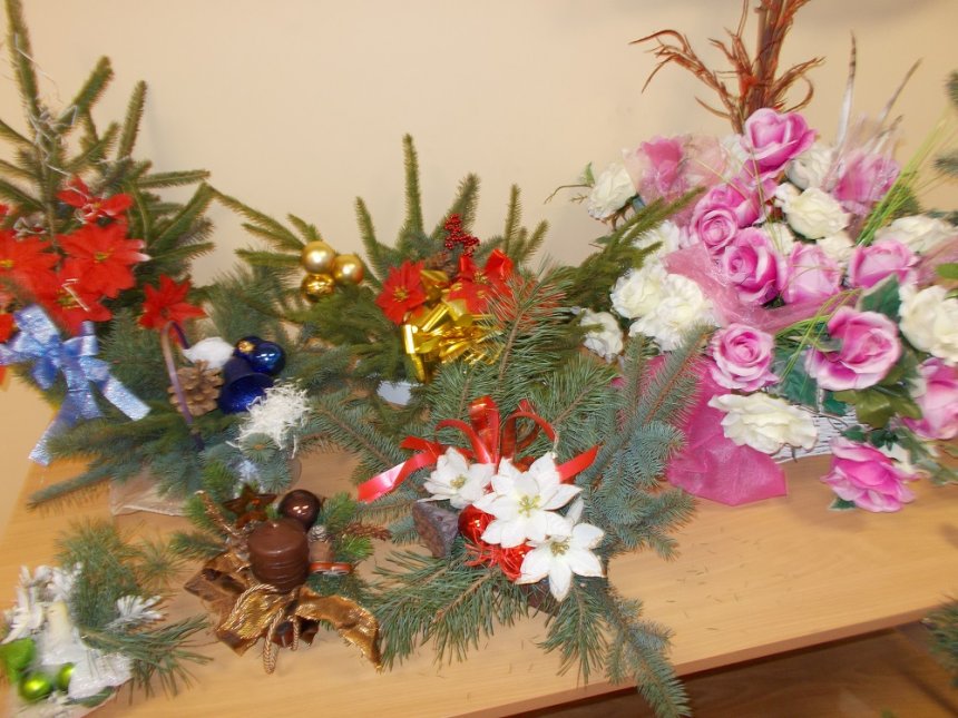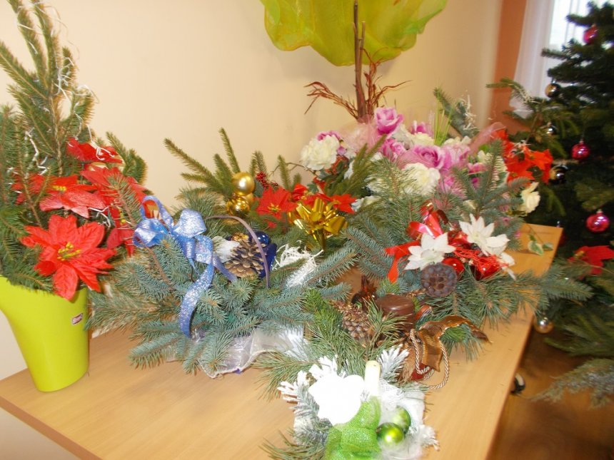 Z gałązek sosny, ostrokrzewu, bombek, kwiatów i innych ozdób wykonali przepiękne stroiki, wieńce i bukiety. Nie brakowało inspiracji, a wykonane własnoręcznie ozdoby będą cieszyć i sprawią, że w święta czarodziejski nastrój zapanuje w domach.
