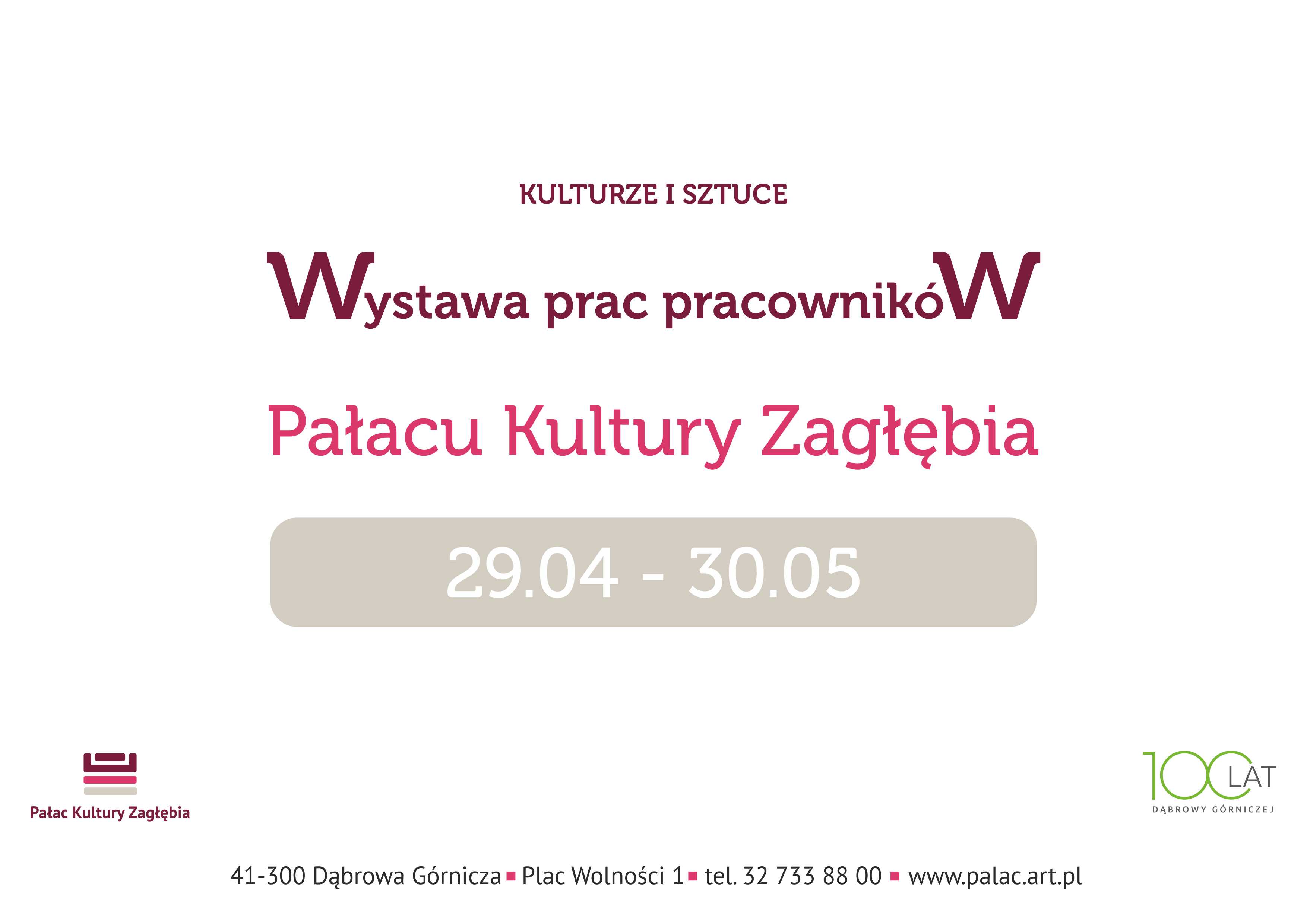 Od piątku, 29 kwietnia 2016 r., w przestrzeniach wystawienniczych przy Sali Teatralnej, można oglądać wyjątkową wystawę wyjątkowych ludzi pt.: "Kulturze i Sztuce Wystawa Prac Pracowników Pałacu Kultury Zagłębia".