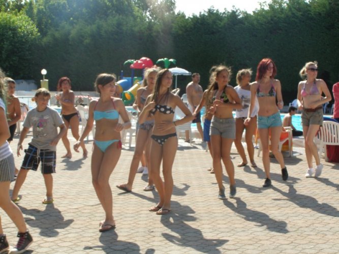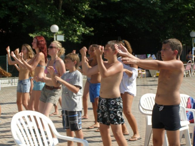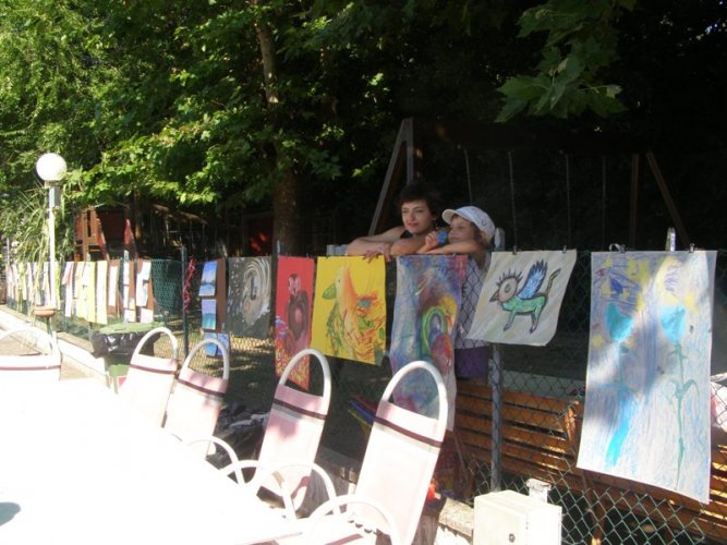 Efekty naszej pracy widoczne były już we Włoszech. Dzieci wystąpiły z programem tanecznym dla wypoczywających na campingu i zaprezentowały prace na wystawie plenerowej „pod chmurką".