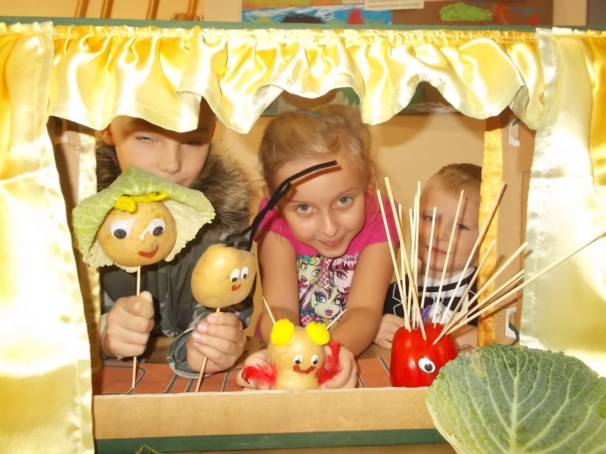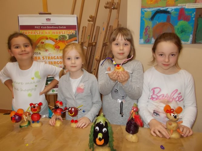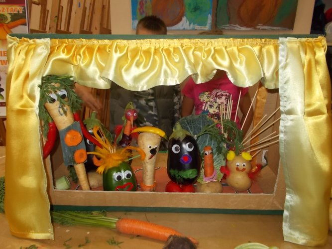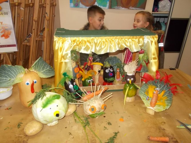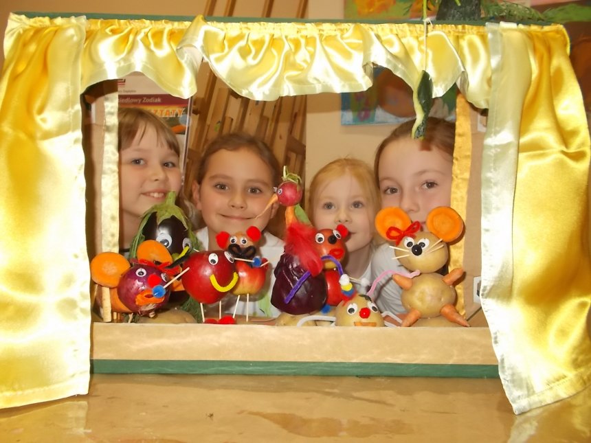 Warsztaty tworzenia kukiełek z warzyw i owoców w Klubie Osiedlowy Zodiak dobiegły końca. Zarówno dzieci jak i my sami bardzo lubimy te zajęcia. Widok tylu darów ziemi, ich ciekawe formy i kolory pobudzają wyobraźnię i pomysły same przychodzą do głowy. Wszystkiego spróbowaliśmy, wiemy dużo o witaminach i rozróżnianiu owoców i warzyw.