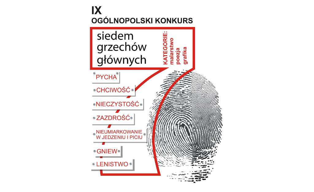 Przypominamy, że trwa IX Ogólnopolski Konkurs Siedem Grzechów Głównych stanowiący zaproszenie do wyrażenia swojego zdania językiem sztuki i podjęcia dyskusji na temat postaw i zjawisk moralnych, społecznych, etycznych, religijnych i kulturowych.