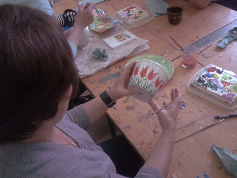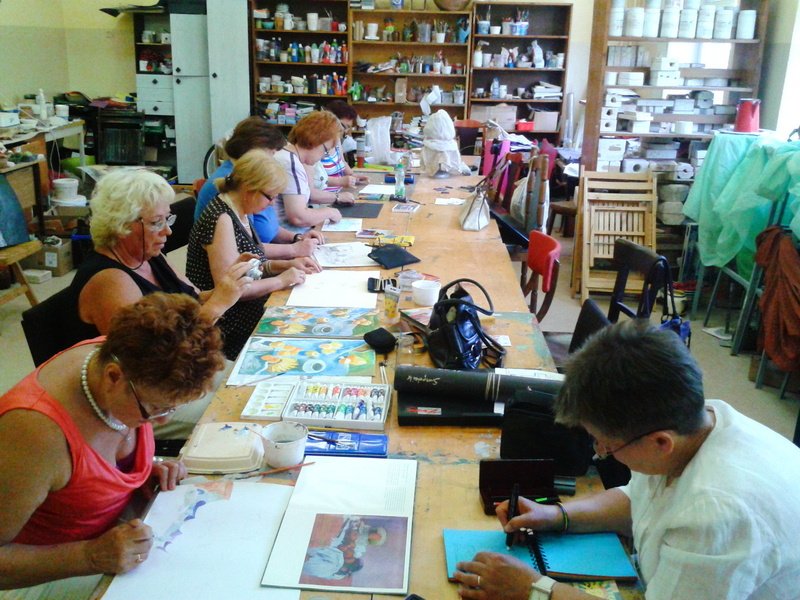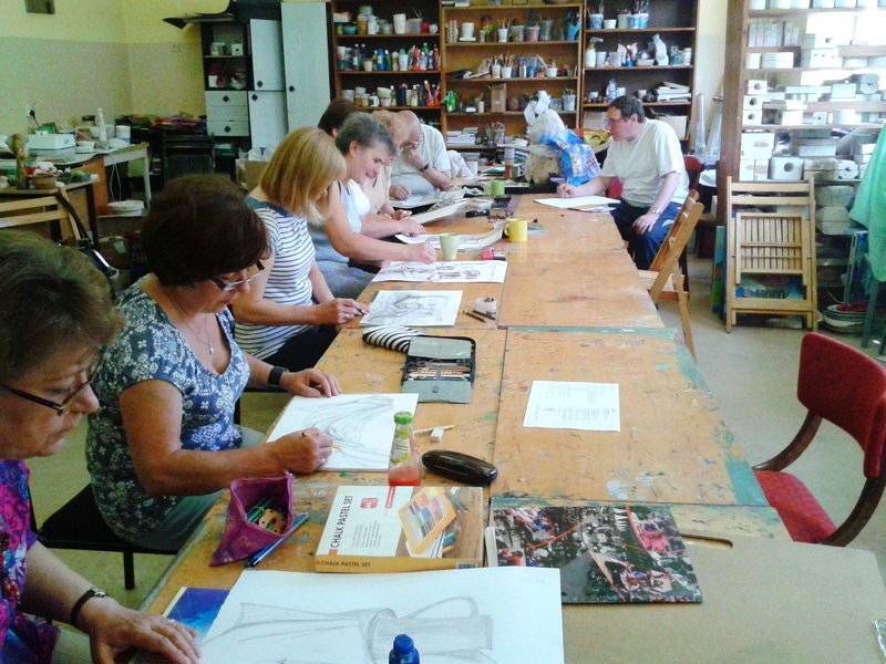Spotkania odbywają się w kilkuosobowych grupach. Stwarzają okazję do dzielenia się doświadczeniami w zakresie sztuk plastycznych oraz do wzajemnej motywacji. Dla urozmaicenia wprowadzane są także techniki malowania na ceramice, techniki dekoracyjne, jak decoupage oraz drobne formy witrażowe lub ceramika.