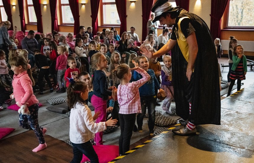 Natomiast w niedzielę, 28 października, dzieciaki miały okazję wziąć udział w Niedzielnym Poranku Teatralnym w ząbkowickim domu kultury. Na scenie wystawiona została zabawna i pouczająca bajka pt. O tym jak Frędzelka i Wiercipiętka znalazły czapeczkę. Najmłodsi wielbiciele teatru byli bardzo zadowoleni, co wyrazili gromkimi brawami.