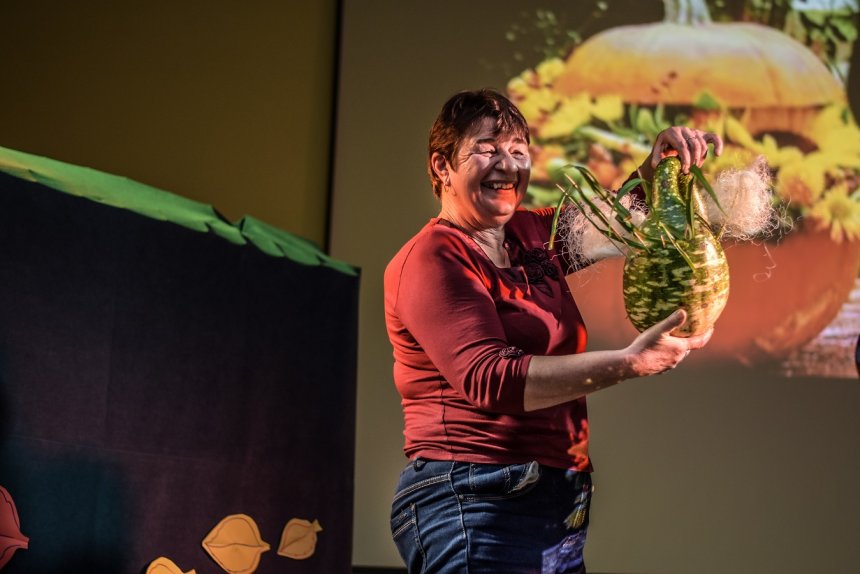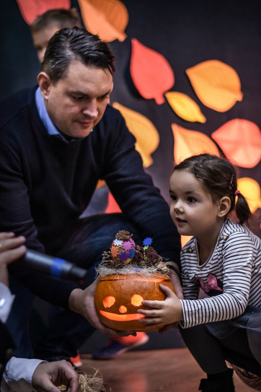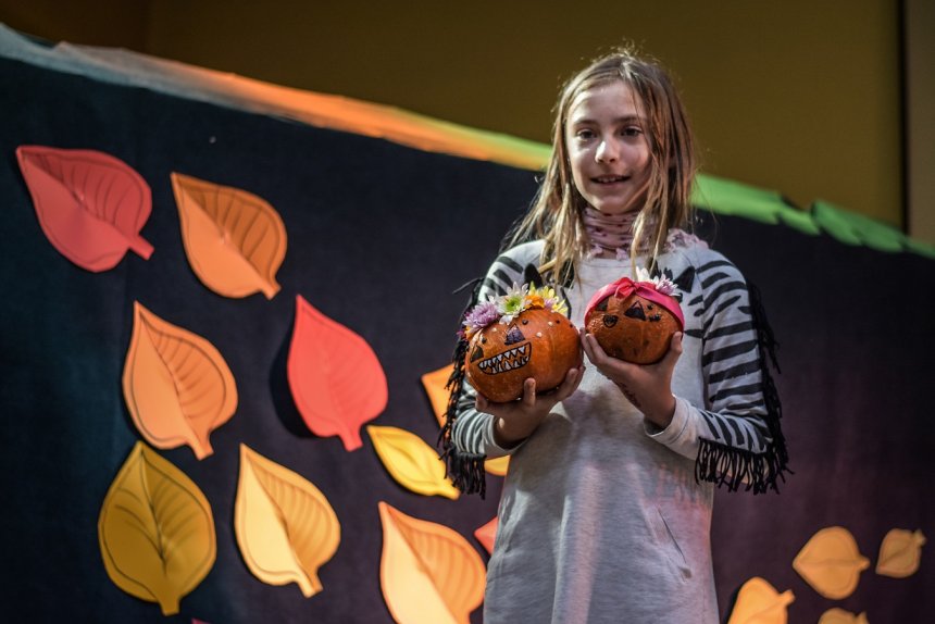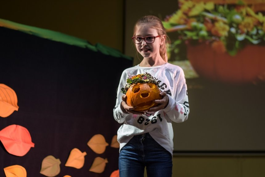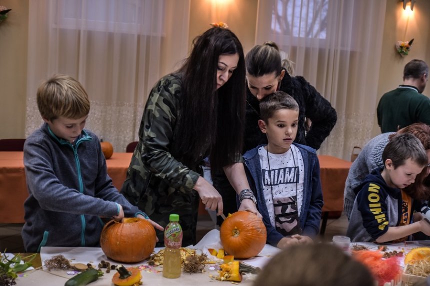 Dynia jednoznacznie kojarzy nam się z jesienią oraz z Halloween, dlatego nie zabrakło też warsztatów pn. Czas na dynię. W rodzinnej atmosferze, dzieci i dorośli dawali upust swojej kreatywności. Dynia w dyni, dynia jedząca kasztany, czy dynia z jarzębiną jako czupryną - to tylko nieliczne pomysły na przyozdobienie pomarańczowego warzywa, które wymyślili uczestnicy.