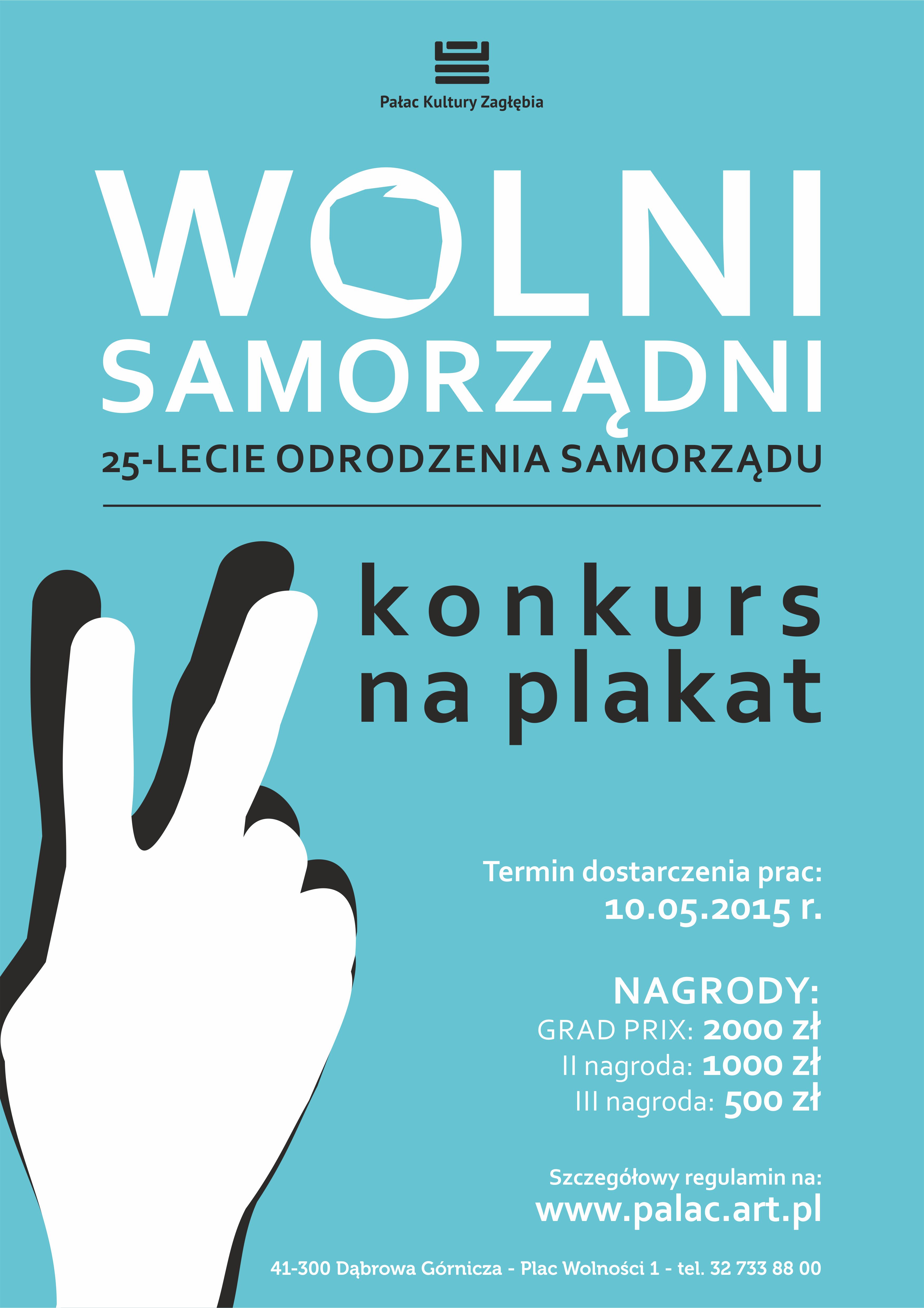 Opisaną pracę oraz wypełnioną KARTĘ ZGŁOSZENIA z CD należy składać w siedzibie PKZ lub przesłać na adres: Pałac Kultury Zagłębia, Plac Wolności 1, 41-300 Dąbrowa Górnicza z dopiskiem „25-lecie odrodzenia samorządu”