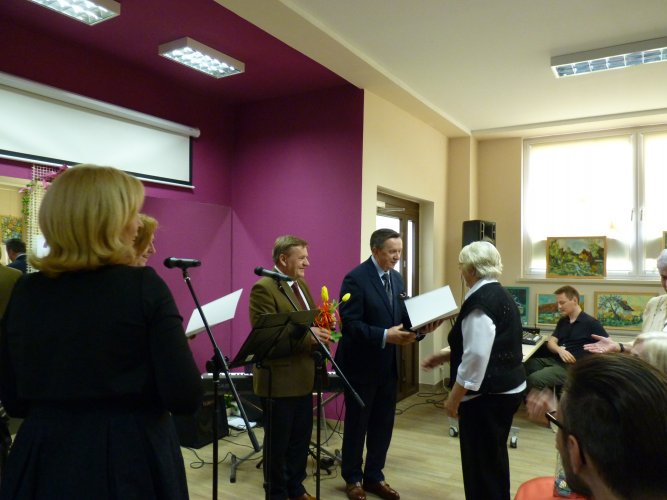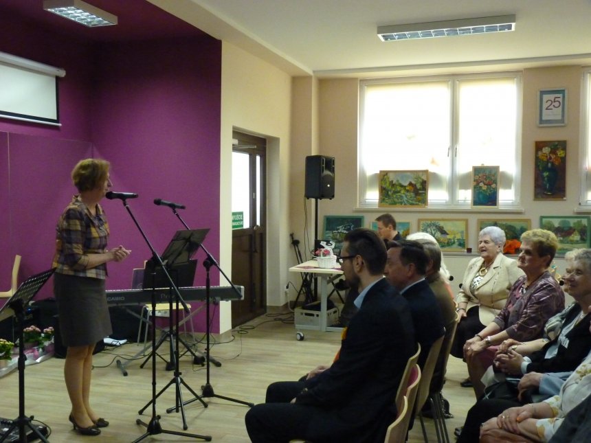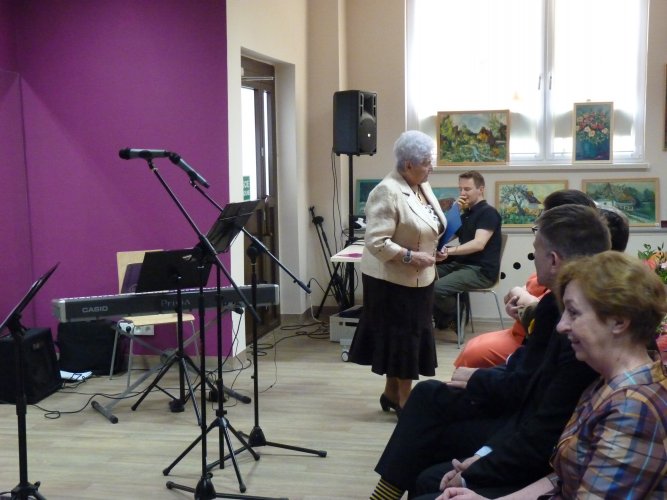 Miejska Orkiestra Dęta zagrała przed klubem. Po koncercie, przy poczęstunku można było obejrzeć wystawę prac Pani Zofii Żelezińskiej prezentowaną obecnie w klubie.