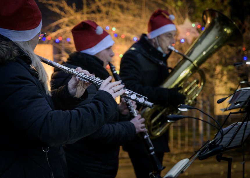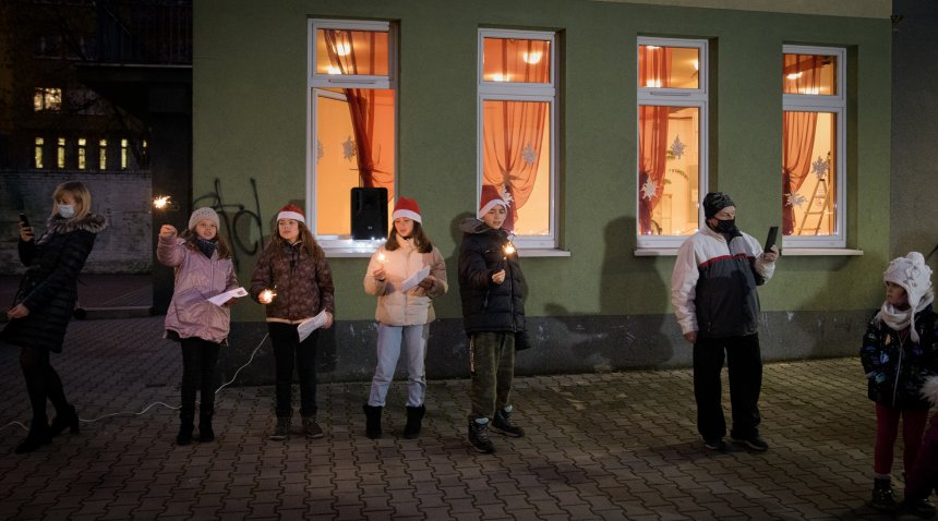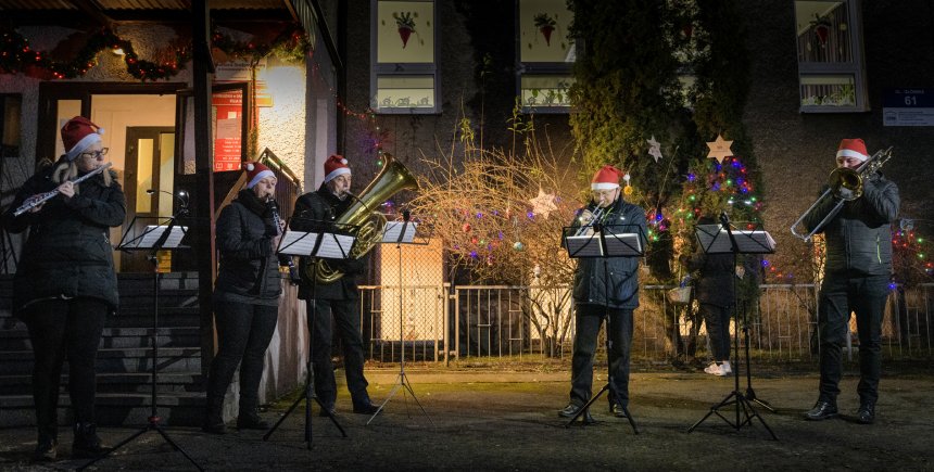 Akcja, o której więcej informacji znajdą Państwo tutaj, zaczęła się przy Świetlicy Środowiskowej PKZ w Strzemieszycach Małych. Tam czekali na mieszkańców muzycy z Miejskiej Orkiestry Dętej w Dąbrowie Górniczej oraz Julia Góra – młoda artystka związana ze świetlicą. Wszyscy śpiewali, przystrajali ręcznie zrobionymi ozdobami drzewko, a niektórzy nawet tańczyli do prezentowanych piosenek. W Strzemieszycach zapanowała iście rodzinna atmosfera.