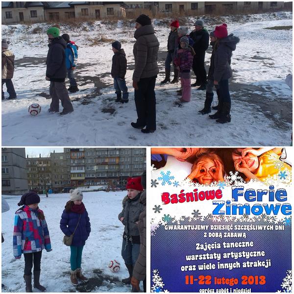 Tegoroczna Akcja Zima miała miejsce w dniach 11-22 luty 2013. Grupa była bardzo kreatywna,zdyscyplinowana, zgrana oraz nastawiona na współpracę. W rankingu na najciekawsze zajęcia zwyciężyły tym razem te organizowane w placówce. Pozytywne nastawienie dzieci do tego typu zajęć i chęc zabawy powodowały, że zajęcia cieszyły się uznaniem, a uczestnicy chętnie przebywali na nich do ostatnich godzin akcji. Zajęcia, które najbardziej przypadły dzieciom do gustu to: turniej gry w piłkarzyki, gra w tenisa stołowego, kalambury oraz szukanie złotych kamyczków, które były ukryte w przeróżnych miejscach na terenie całego klubu. Na koniec Akcji Zima zostało zorganizowane wyjście "niespodzianka" do pizzerii gdzie dzieci miło spędziły czas przy dobrej pizzy wspominając kończącą się już akcję.