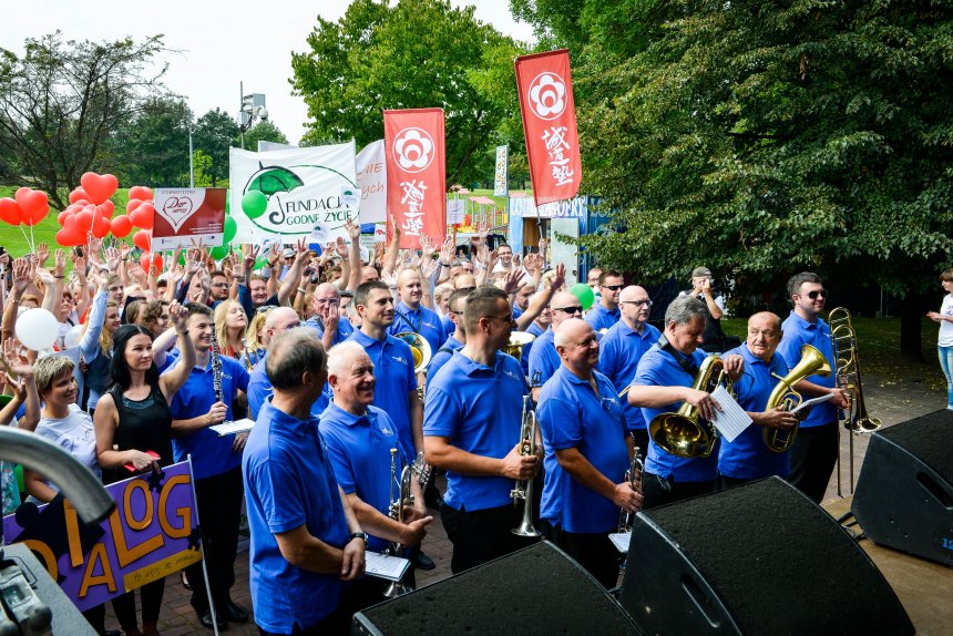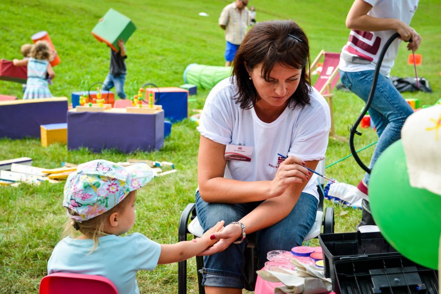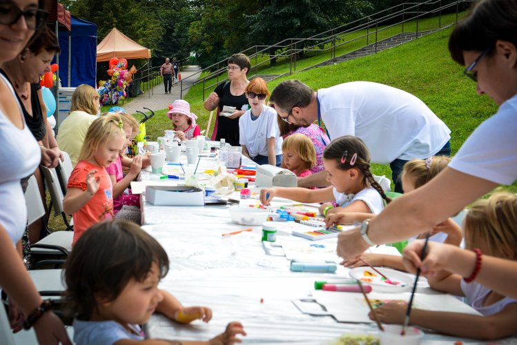 Festiwal Ludzi Aktywnych przeminął. Każdy, kto zawitał w tę sobotę do Parku Hallera, został pochłonięty przez tłumy, mógł utonąć w morzu stoisk mniejszych lub większych organizacji pozarządowych, kramów z orzeszkami, kawą watą cukrową, budek z lodami... Na małej scenie o 12.00 odbyło się oficjalne otwarcie festiwalu. Tam też do 18.00 trwały prezentacje i wstępy artystyczne. Również nasz pałacowy zespół miał solidną reprezentację. Obsługa naszego punktu informacyjnego służyła poradą i opowiadała barwnie o atrakcjach czekających na was w naszych murach. Ulokowane naprzeciwko małej sceny Miasteczko PKZ przyciągnęło wiele dzieciaków. Oferowaliśmy malowanie kubków, tory z przeszkodami i liczne konkursy. Jednym z nich była gra „Odnajdź PKZetka” - uczestnicy z wypiekami na twarzy szukali w parku podobizny naszej pałacowej maskotki.