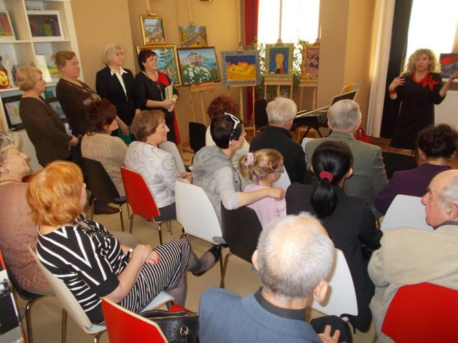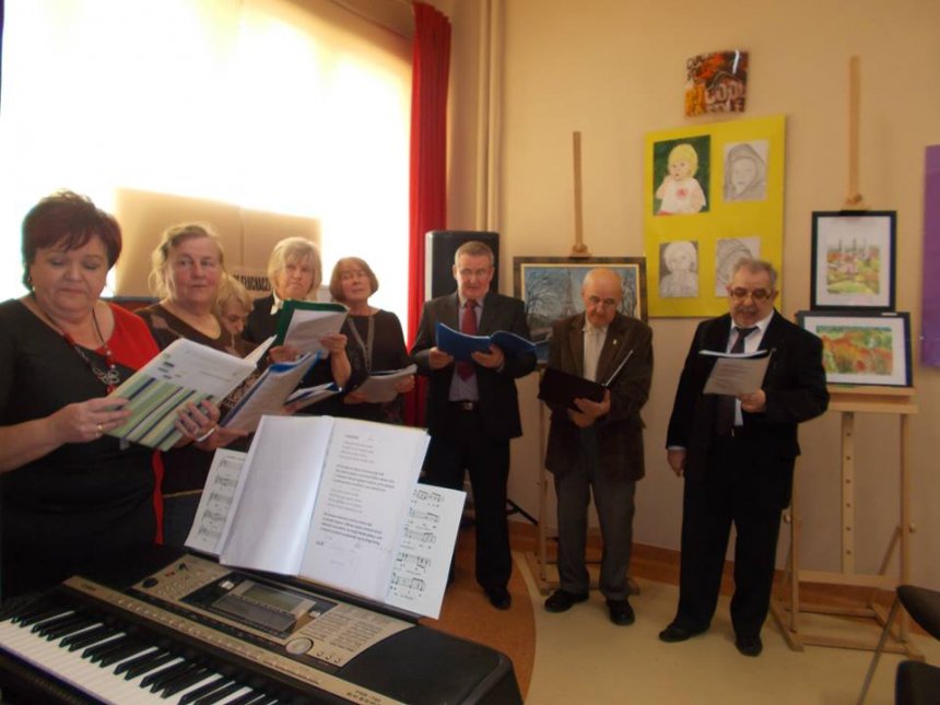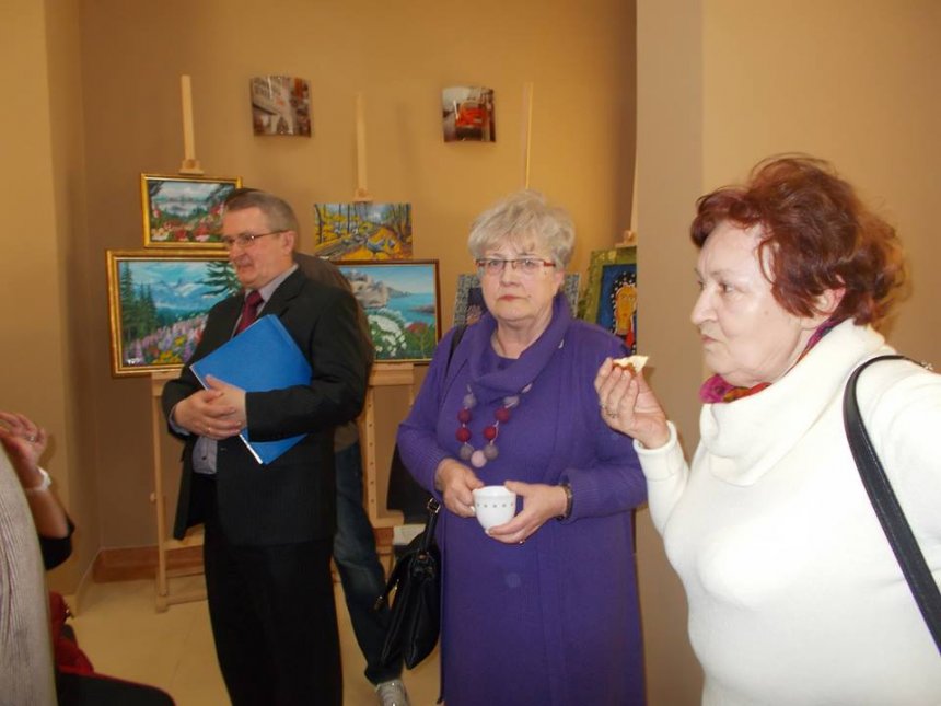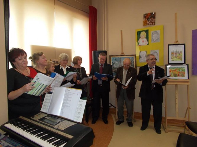 Wernisaż uświetnił mini koncert muzyczny ,,Chodź pomaluj mój świat", grupy Dominika GPS działającej w ramach UTW.