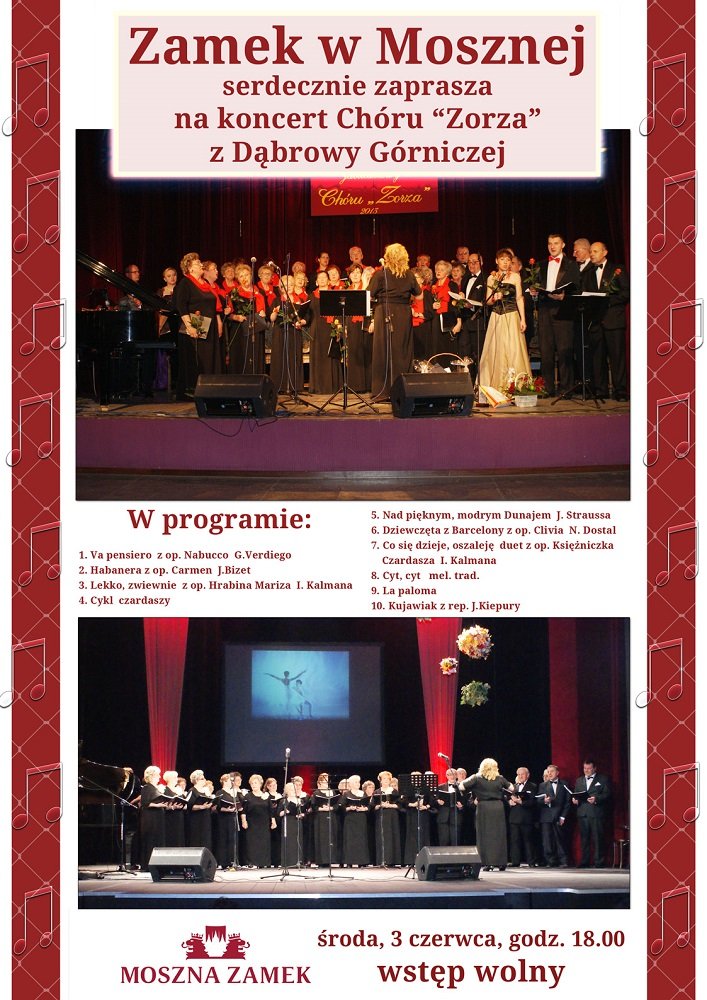 3 czerwca 2015 r., chór „Zorza” działający w Klubie Osiedlowym Helikon dał koncert w kaplicy zamkowej pałacu w Mosznej.
