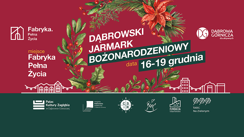Wszystkich mieszkańców Dąbrowy Górniczej (i nie tylko!) zapraszamy od 16 do 19 grudnia na Dąbrowski Jarmark Bożonarodzeniowy do Fabryki Pełnej Życia, przygotowany przez instytucje kultury (m.in. Pałac Kultury Zagłębia), sportu, rekreacji, czasu wolnego oraz partnerów i sponsorów.