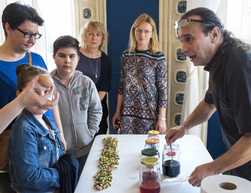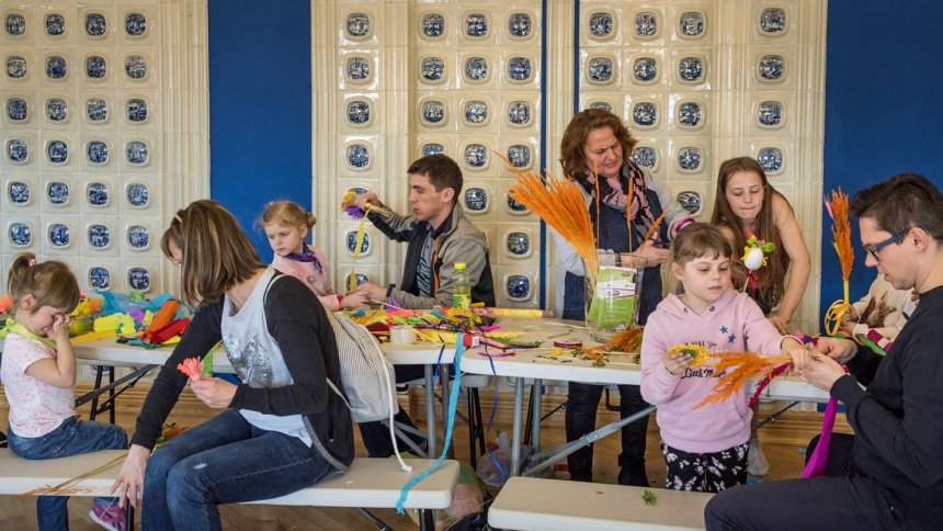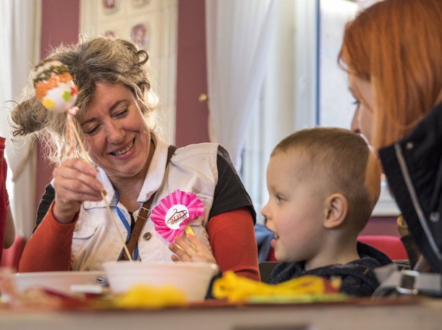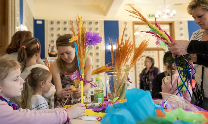 Uczestnicy mogli też wziąć udział w warsztatach artystycznych i kreatywnych m.in. tworzenia palm wielkanocnych, ogromnych kartek świątecznych, ozdób ceramicznych, upiększania jaj wstążeczkami, koralikami, cekinami i innymi materiałami oraz, w wersji tradycyjnej, zdobienia jaj woskiem. Ponadto na dzieci czekały seanse filmowe w Kinie Kadr, ogromna bawialnia, spektakle teatralne i koncert muzyki klasycznej. Wszystko z przymrużeniem oka, bo dzisiejszy dzień to nie tylko Szafa Dzieciaka, ale też... Prima Aprilis.
