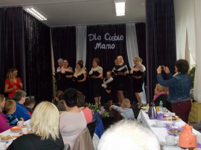 Na zakończenie dzieci dla wszystkich mam i pozostałych uczestników spotkania, wręczyły przygotowane własnoręcznie wykonane upominki.