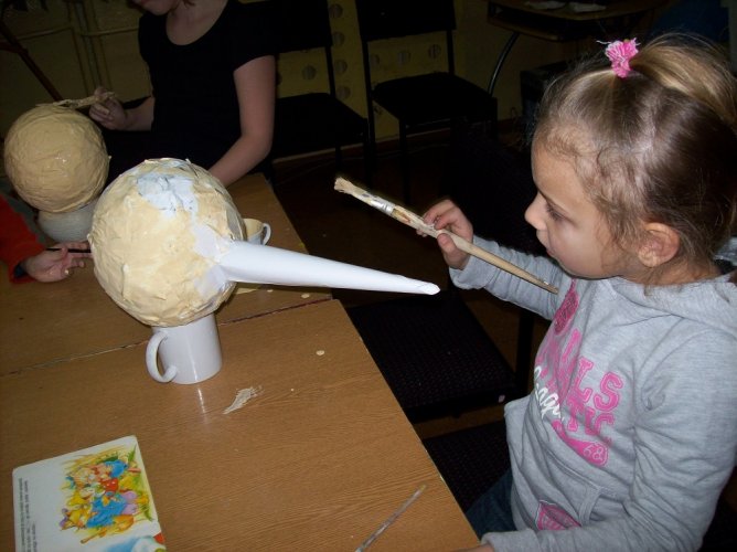 W świetlicy w Strzemieszycach Małych po raz kolejny uczestnicy zajęć wykazują się artystycznie przedstawiając swoich ulubionych bohaterów. W tym roku dzieci dostały przygotowaną wcześniej papierową kulę, którą należało przetworzyć, podoklejać, pomalować, przyozdobić tak, aby powstała głowa bajkowego bohatera. Jak zwykle zabawa była świetna.