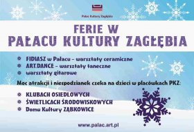 Pałac Kultury Zagłębia, jak co roku w okresie zimowym przygotował dla dzieci i młodzieży spędzających ferie w mieście, wachlarz interesujących zajęć oraz moc atrakcji.
