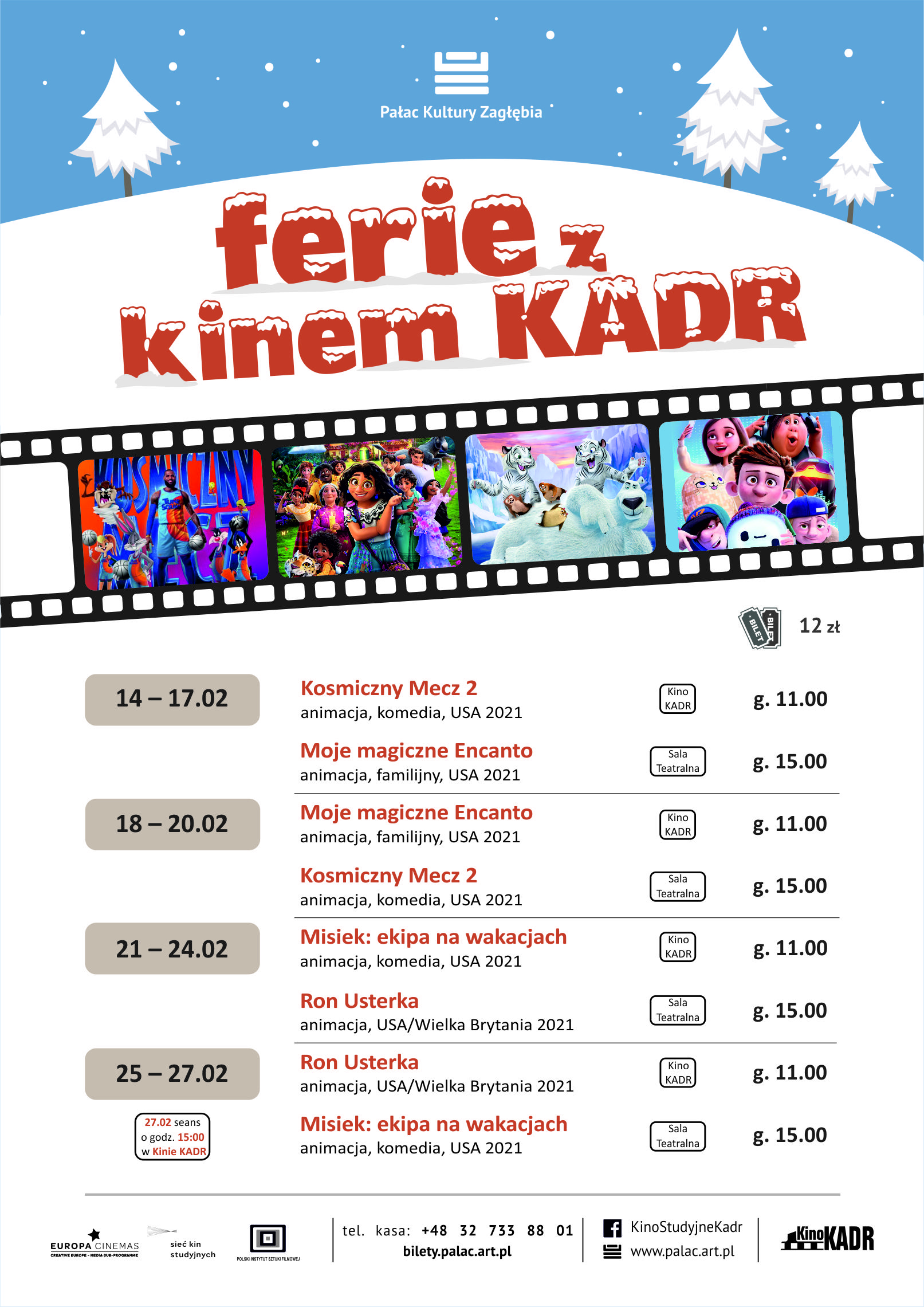 Po roku przerwy Kino Kadr powraca do cyklu seansów filmowych w okresie ferii zimowych. Pokażemy filmy animowane dla każdego, kto czuje się młody - bez względu na metrykę. Filmowe ferie potrwają od 14 do 27 lutego. Zapraszamy na seanse, które będą odbywać się w godzinach 11:00 i 15:00.