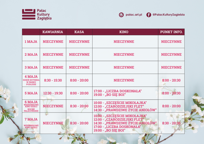 Przez pierwsze trzy dni Majówki Pałac będzie nieczynny, ale już 4 maja zapraszamy wszystkich do Parku Podlesie na Festyn z okazji Dnia Hutnika.