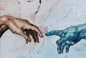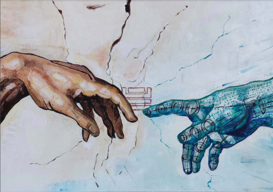 Jego praca inspirowana jest obrazem Michała Anioła pt. Stworzenie Adama.