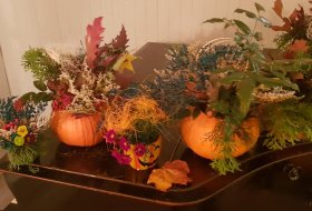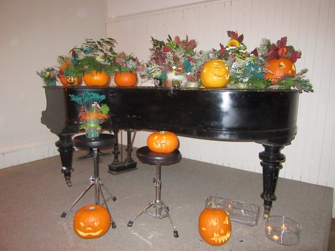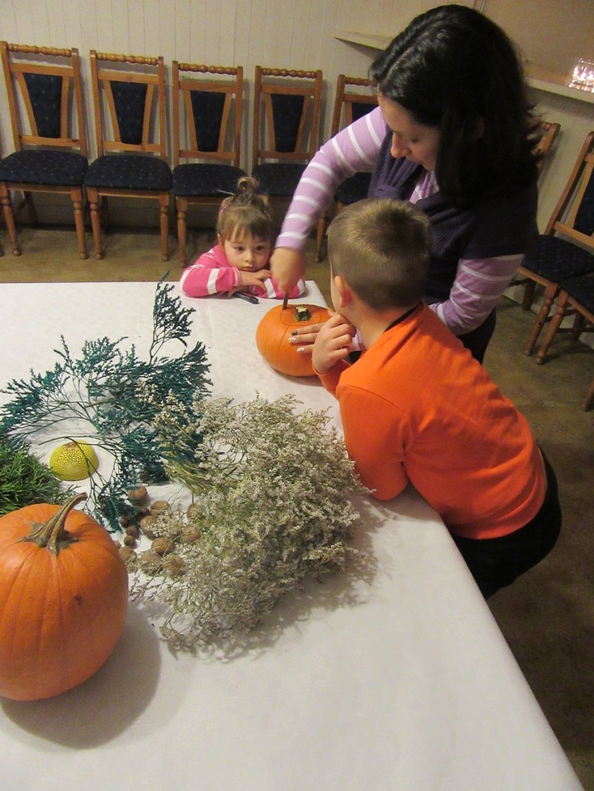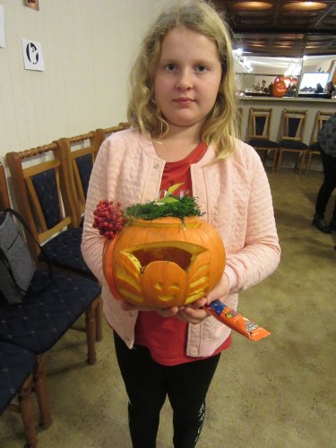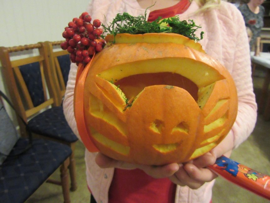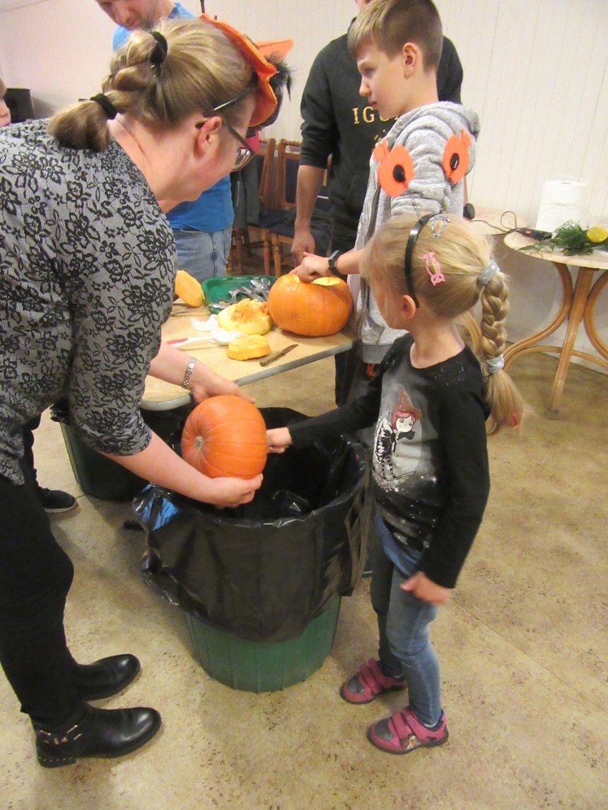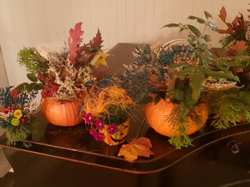 30 października br. gościliśmy w PKZ Domu Kultury Ząbkowice dzieci z opiekunami, z którymi wykonaliśmy dyniowe lampiony oraz jesienne kompozycje do dekoracji stołu i wnętrz. Przy wspólnym stole powstawały "potworne" dynie, stroiki w jesiennych akcentach, bukiety w dyniowych wazonach. Przybyli goście mogli się również dowiedzieć, że święto Halloween wcale nie pochodzi z Ameryki, tylko z Irlandii, a swoje korzenie ma w celtyckich obrzędach.