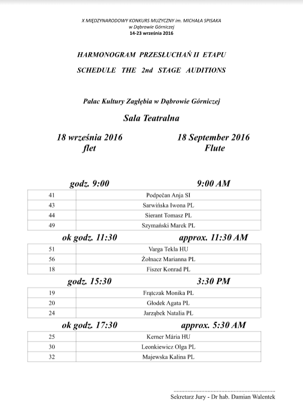 Harmonogram II etapu - flet (schedule of the 2nd stage auditions - flute) 16.09.2016 Aktualności Autor: Olaf Otwinowski Harmonogram poniżej: Below You can find the schedule: Głosuj na to zdjęcie56PoprzednieNastępne Tagi: harmonogram, flet, II etap, X Międzynarodowy Konkurs Muzyczny im. Michała Spisaka Podziel się:Udostępnij na Facebooku