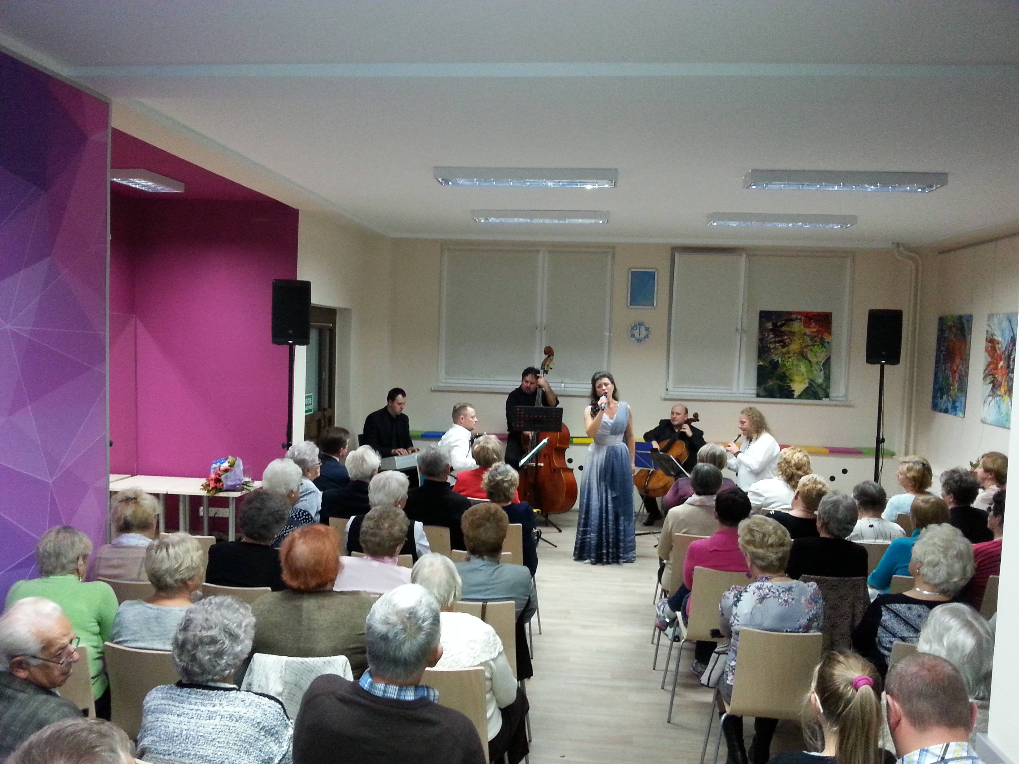 Koncert "Tańczące Eurydyki" czarującej Aleksandry Stokłosy z zespołem Fourmat Gabriel uświetnił naszą uroczystość. Usłyszeliśmy poruszające piosenki Anny German, w niezwykłej emocjonalnej interpretacji. Pani Ola sopranistka Opery Bytomskiej śpiewała z Wiesławem Ochmanem, pod batutą Macieja Niesiołowskiego, ale chyba nigdy w tak kameralnej sali. Były bisy, kwiaty i łzy wzruszenia.