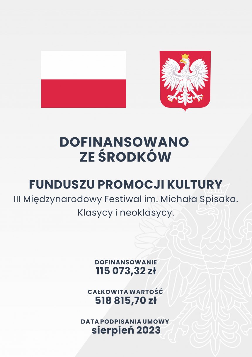 IV Międzynarodowy Festiwal im. Michała Spisaka otrzymał wsparcie MKiDN