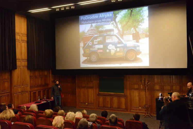 Arkady Paweł Fiedler, polski podróżnik, który przejechał przez Afrykę "Maluchem", był wczoraj gościem w pałacowym Kinie KADR i jako pierwszy otworzył cykl "Spotkań z podróżnikami". I choć dopiero co wrócił z wyprawy po Azji, gdzie przejechał tym samym pojazdem ponad 22 000 km, to podzielił się swoimi wspomnieniami z podróży po państwach afrykańskich – o kulturach, które poznał, o ciekawych miejscach i o tym co warto zobaczyć. Dzielił się nie tylko wspomnieniami, ale i obrazkami z podróży, przedstawiającymi niejednokrotnie widoki zapierające dech w piersiach. Jednak największym zaciekawieniem cieszyła się opowieść o "Maluchu", który robił furorę wszędzie, gdzie się pojawił. Całość spotkania zakończyła się gromkimi oklaskami, pytaniami do podróżnika oraz zbieraniem autografów. Kto wie, może przyjedzie jeszcze do nas opowiedzieć o swoich dalszych wyprawach małym, polskim Fiatem?