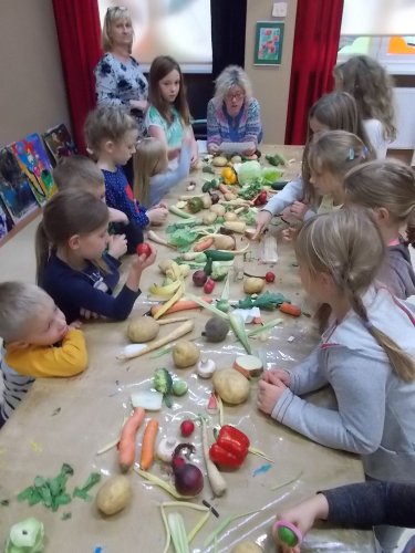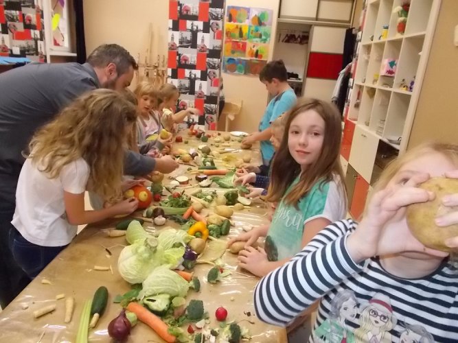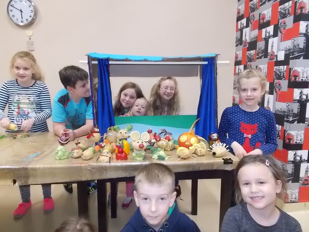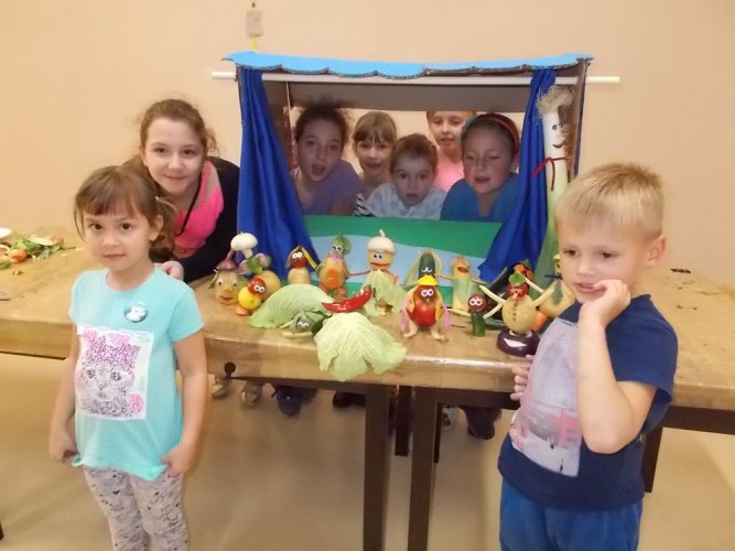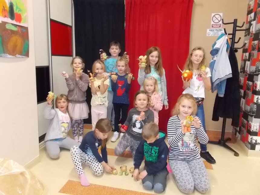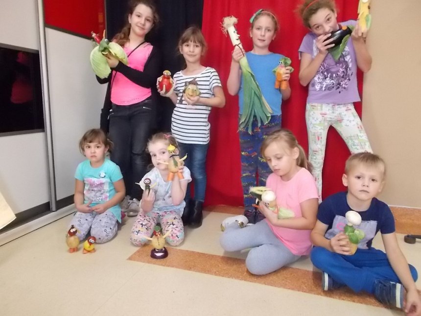 Warsztaty tworzenia kukiełek z warzyw i owoców w Klubie Osiedlowym Zodiak dobiegły końca. Różnorodne dary ziemi i ciekawe formy pobudziły wyobraźnię uczestników. W myśl zasady "przyjemne z pożytecznym" dowiedzieliśmy się też wielu informacji o witaminach, owocach i warzywach. Finałem był krótki teatrzyk z wykorzystaniem wykonanych kukiełek i scenariuszem napisanym przez dzieci.
