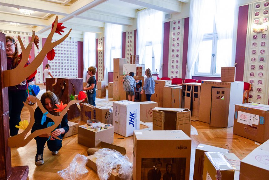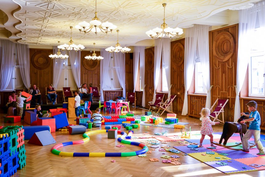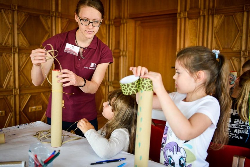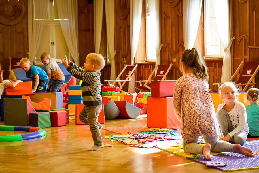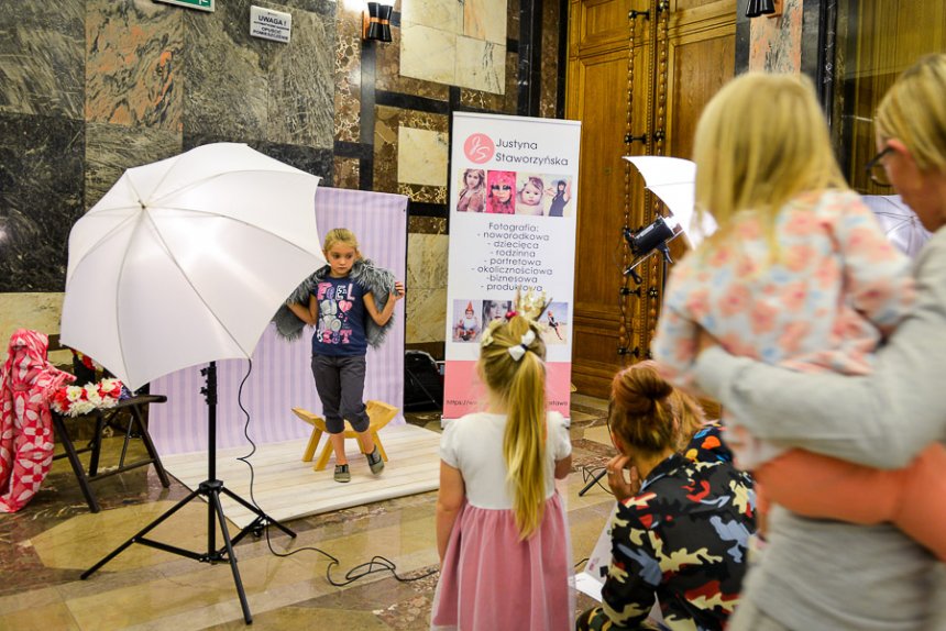 Jesienna odsłona szafingu w PKZ, okazała się największą z dotychczasowych. Nie tylko ze względu na rozszerzony program, ale przede wszystkim na liczbę osób, które zainteresowały się tym wydarzeniem. Gdy rodzice kupowali za przysłowiowe "grosze" lub wymieniali ubranka z wystawcami, dzieciaki bawiły się w najlepsze podczas spektaklu "O Czerwonym Kapturku, czyli do prawy po sznurku", czyli nieco zmienionej historii dziewczynki idącej przez las do babci. Spektakl odbył się z udziałem publiczności na scenie i cieszył się olbrzymim zainteresowaniem - do tego stopnia, że zabrakło biletów, pomimo iż wystawiany był trzykrotnie. Podobnie było z seansami w Kinie KADR. Na wielkim ekranie wyświetliliśmy filmy "Szajbusa i pingwiny" oraz "Jak zostać kotem". Dzieciaki miały również okazję wziąć udział w warsztatach plastycznych z robienia instrumentów, przyozdabiania, tworzenia mozaiki ceramicznej, bądź za zgodą rodziców w przeuroczej sesji fotograficznej autorstwa Justyny Staworzyńskiej-Lichosik (zdjęcia już wkrótce na pałacowym profilu na FB).