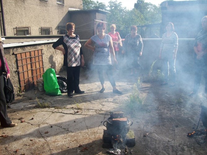 W sobotni, jesienny, a zarazem słoneczny dzień w Świetlicy Środowiskowej w Strzemieszycach Małych Koło Gospodyń przy współpracy świetlicy zorganizowało integracyjną imprezę "Jesienne obyczaje". Większość z nas uwielbia ziemniaki pieczone na ognisku w żeliwnym garnku przykryte liśćmi z kapusty, których przygotowanie to nie lada sztuka. Atrakcją było również szatkowanie kapusty na około 100-letniej szatkownicy. Noże były już troche tępe, ale chętnych do spróbowania jak to się robi nie brakowało. Oczywiście dla wszystkich szatkujących przygotowane były nagrody w postaci prac wykonanych przez dzieci na zajęciach w świetlicy.