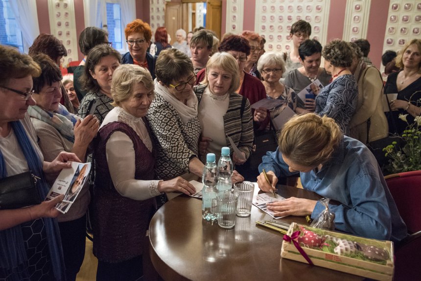 Dzisiejsza Kawa z Gwiazdą już za nami, właśnie w tej chwili nasz gość – Sonia Bohosiewicz – rozdaje autografy w Sali Agora. Zapewne dąbrowska publiczność będzie bardzo miło wspominać dzisiejsze spotkanie z aktorką i wokalistką, gdyż poznała wiele ciekawych anegdot z jej życia.