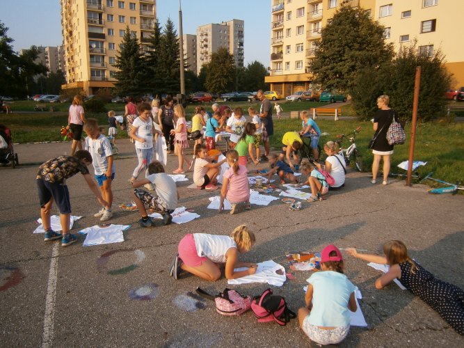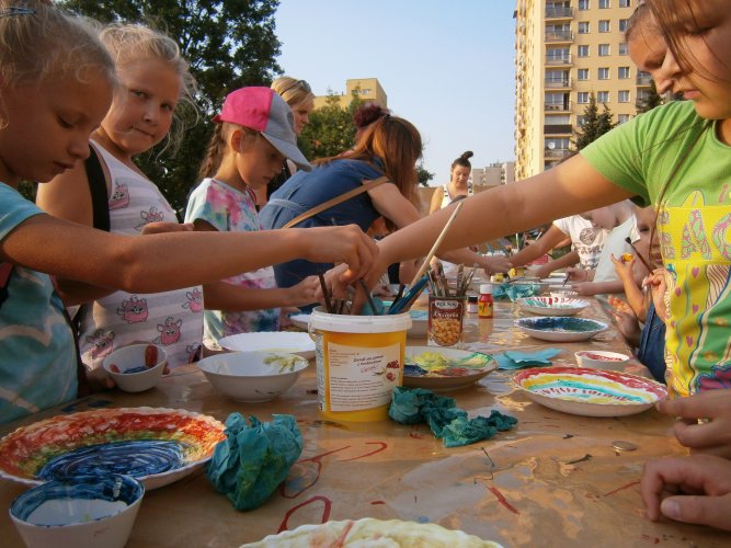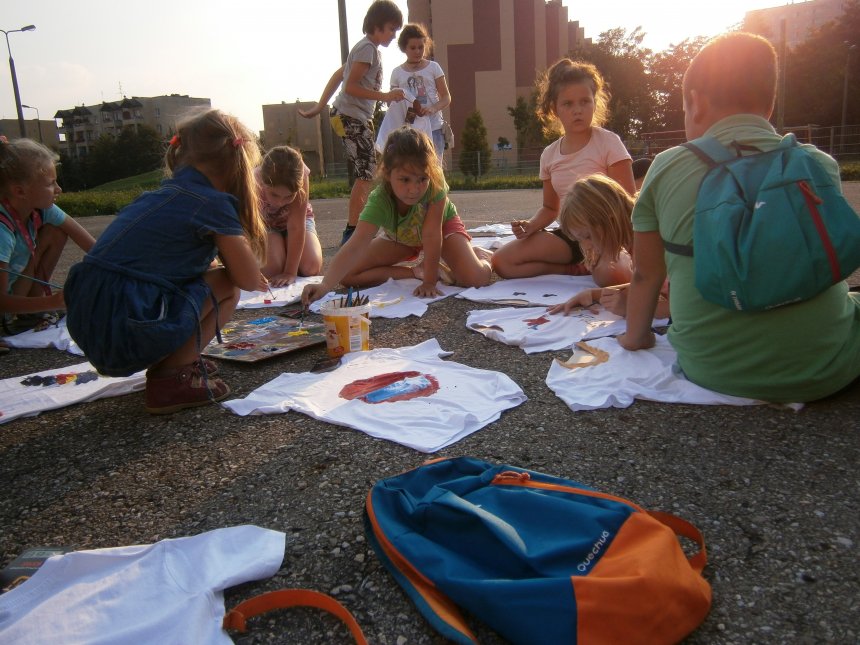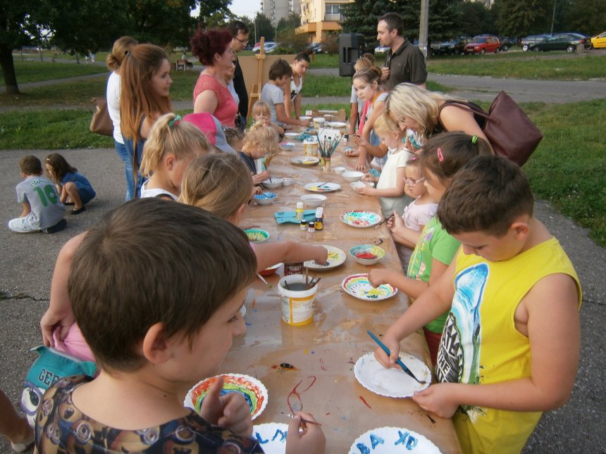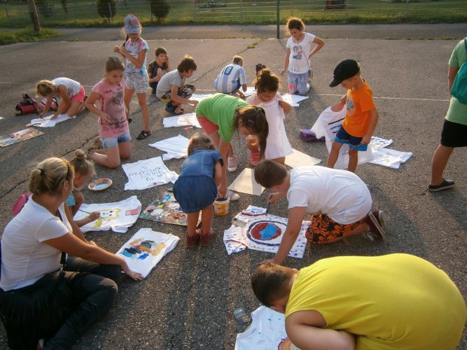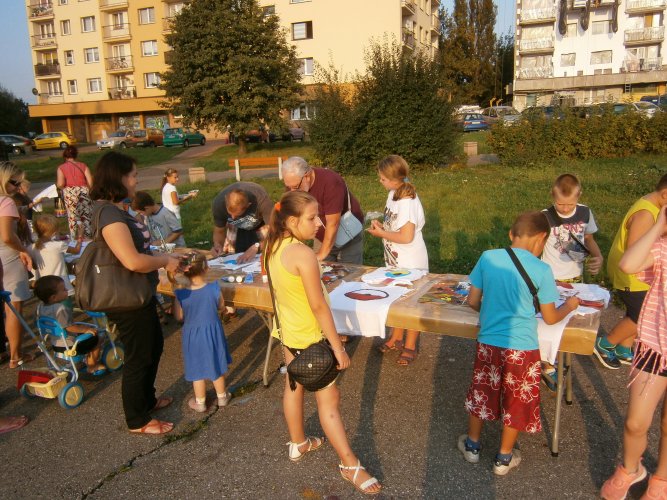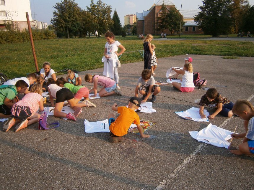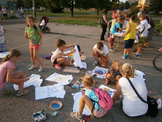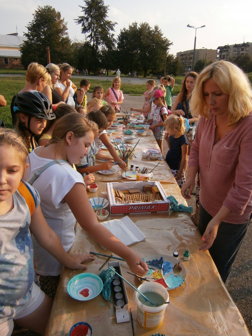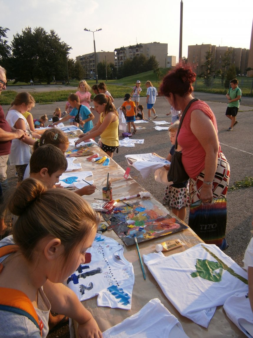 Było kilka już wielokrotnie sprawdzonych atrakcji dla najmłodszych. Przy muzyce dzieci malowały na porcelanie, kubkach, talerzach i miseczkach specjalnymi farbami, króre utrwala się wypiekając naczynie w piekarniku. Jak zawsze dużą popularnościa cieszyło się malowanie na koszulkach, oczywiście farbami do tkanin. Przeważała tematyka roślinno-kwiatowa, wzory geometryczne, chłopcy oczywiście malowali koszulki piłkarskie i postacie z gier komputerowych. Malowano też pejzaże, wypisywano imiona i nawet, jak można zobaczyć na zdjęciach wyznania miłosne.