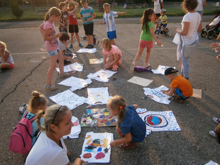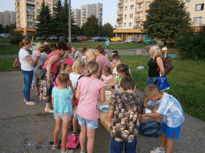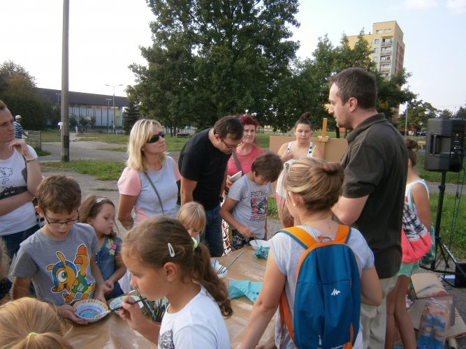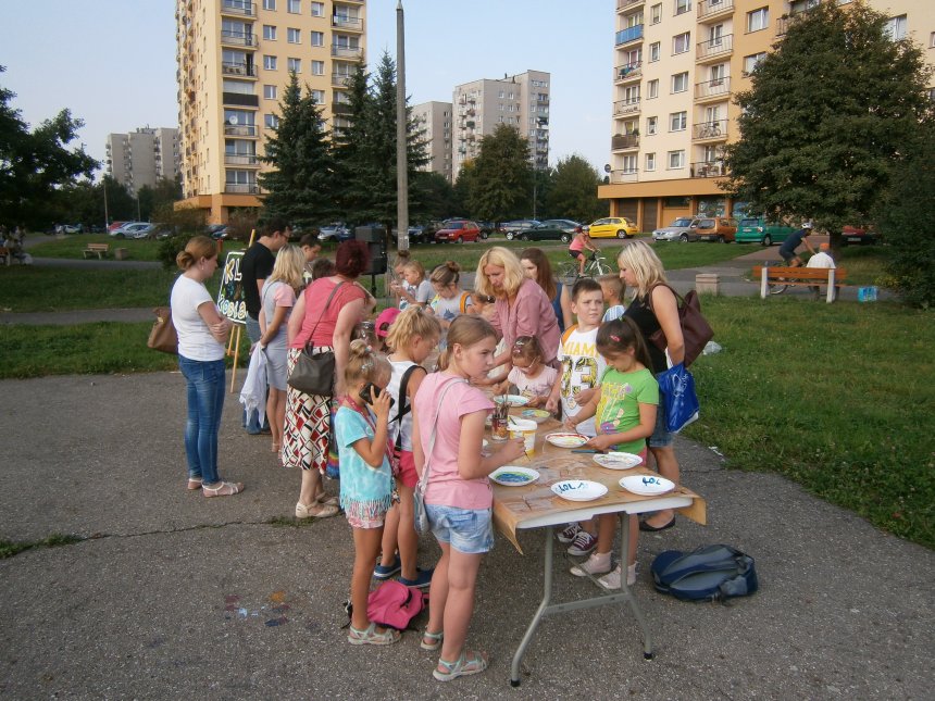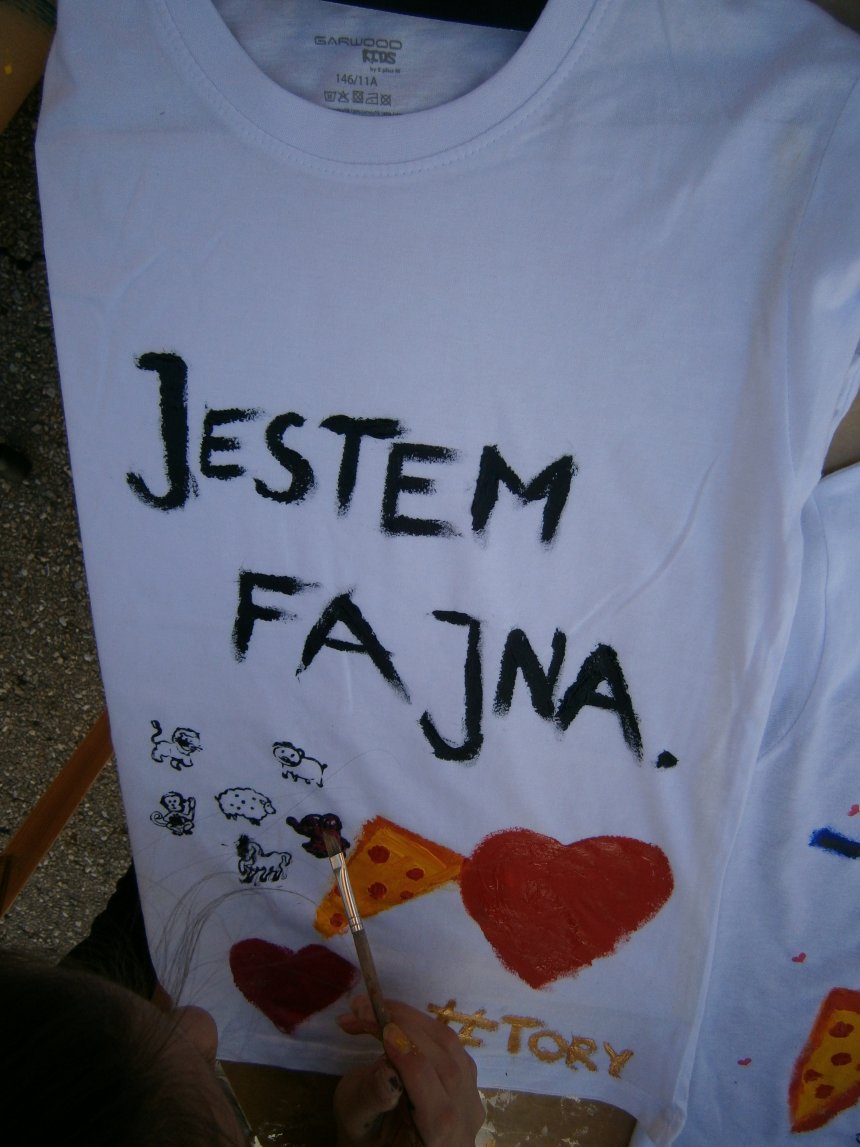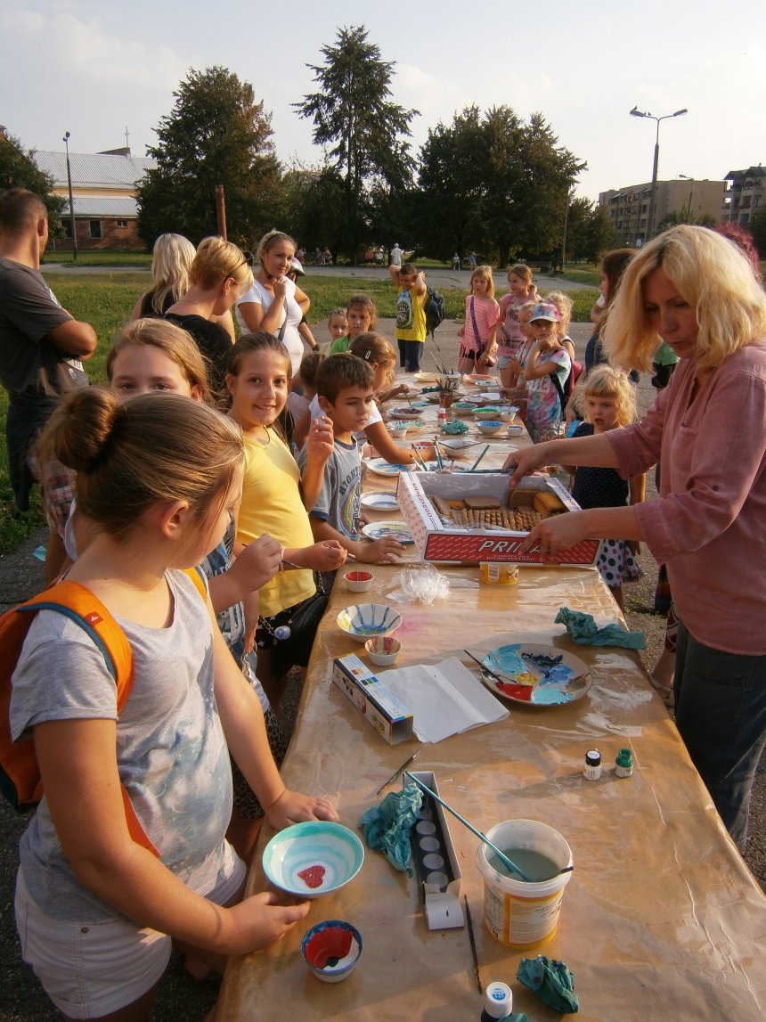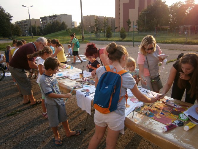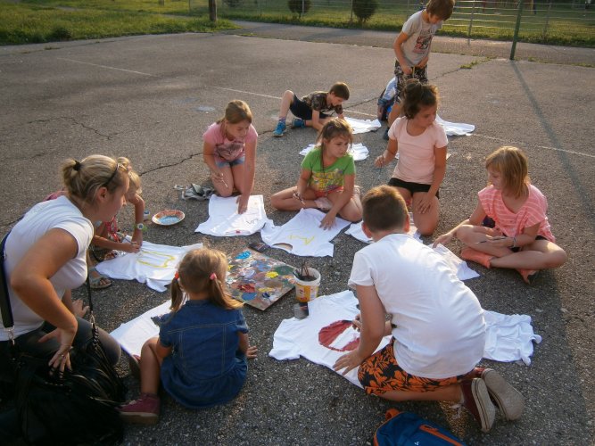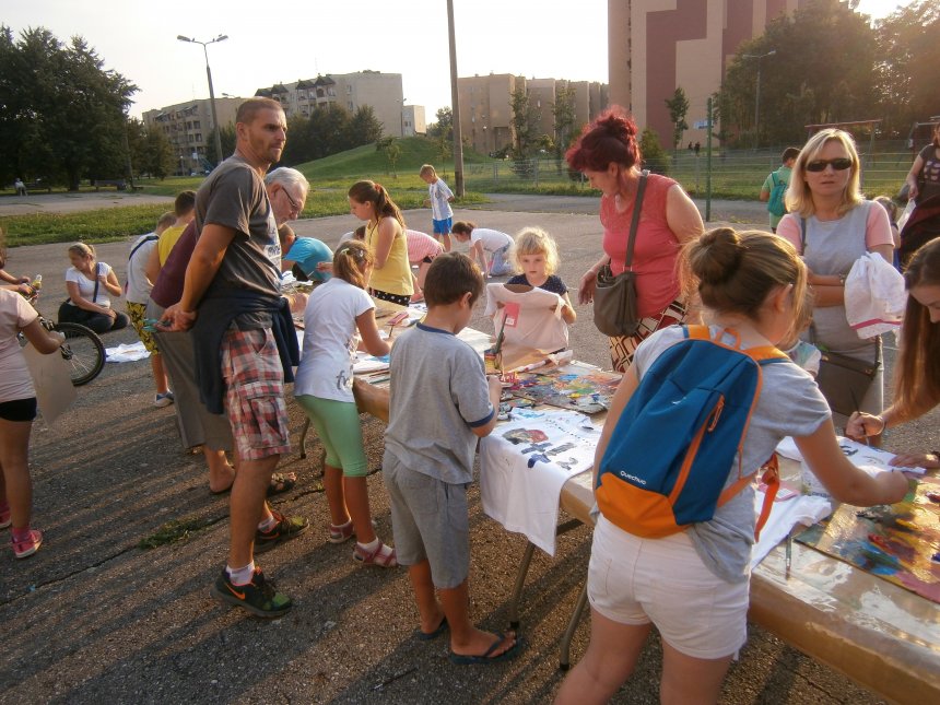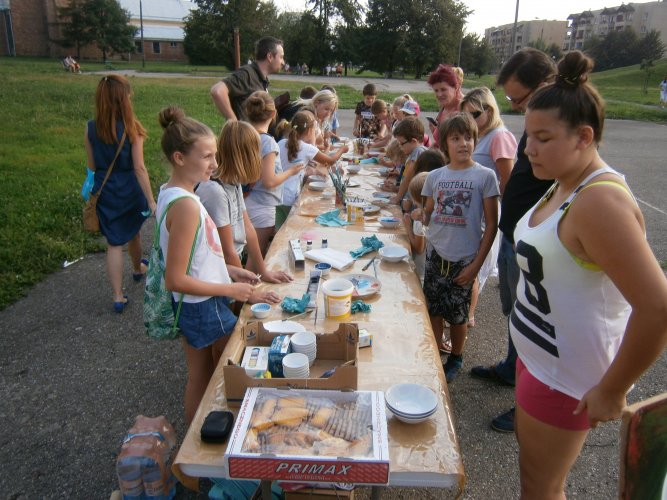 Było kilka już wielokrotnie sprawdzonych atrakcji dla najmłodszych. Przy muzyce dzieci malowały na porcelanie, kubkach, talerzach i miseczkach specjalnymi farbami, króre utrwala się wypiekając naczynie w piekarniku. Jak zawsze dużą popularnościa cieszyło się malowanie na koszulkach, oczywiście farbami do tkanin. Przeważała tematyka roślinno-kwiatowa, wzory geometryczne, chłopcy oczywiście malowali koszulki piłkarskie i postacie z gier komputerowych. Malowano też pejzaże, wypisywano imiona i nawet, jak można zobaczyć na zdjęciach wyznania miłosne.