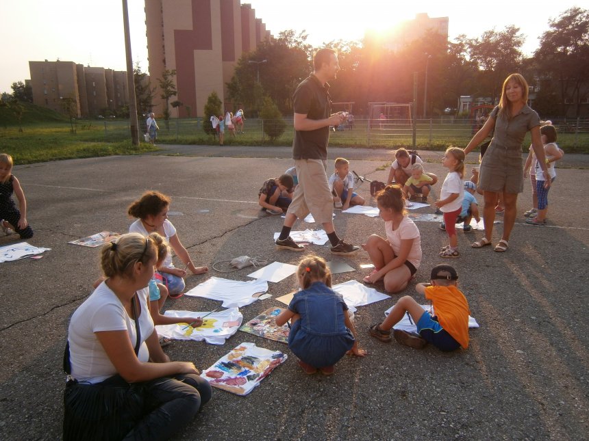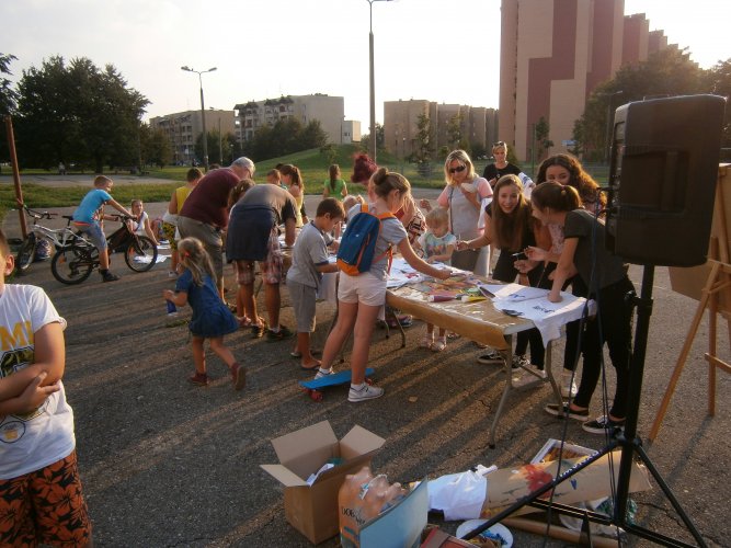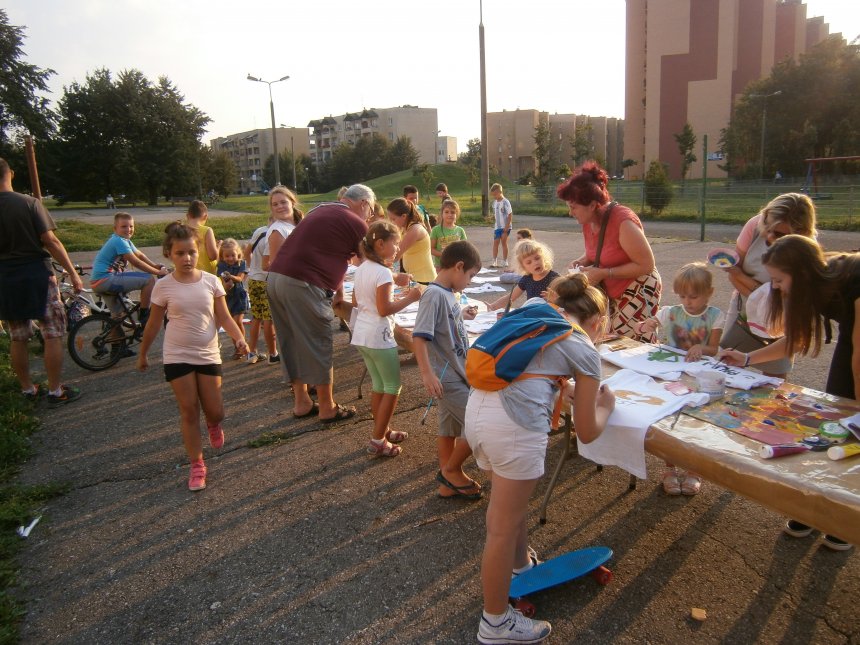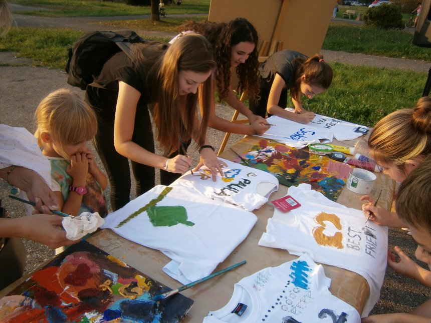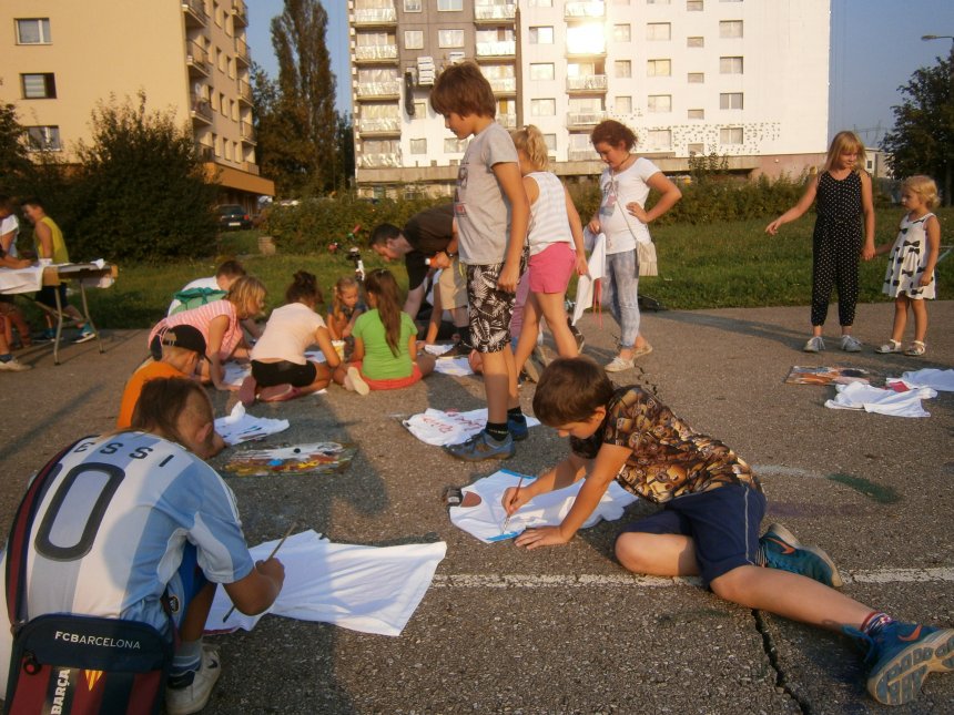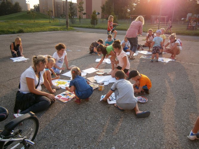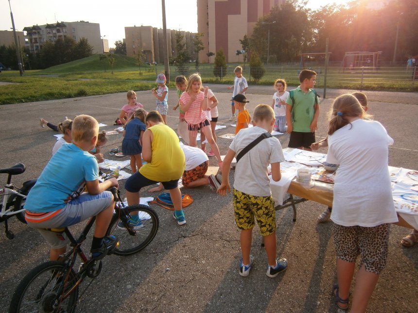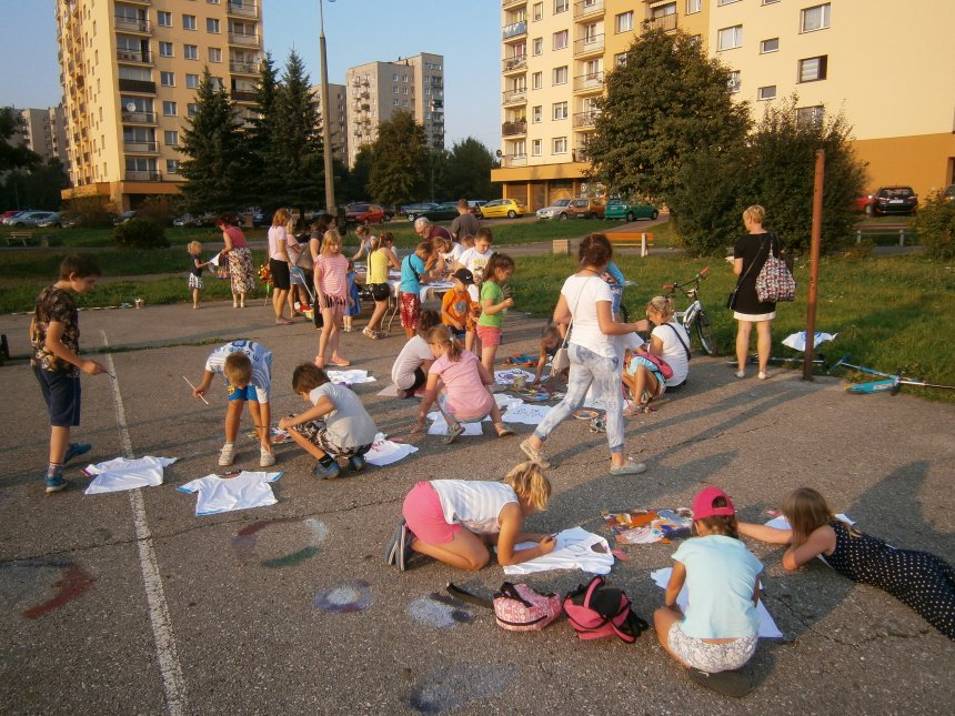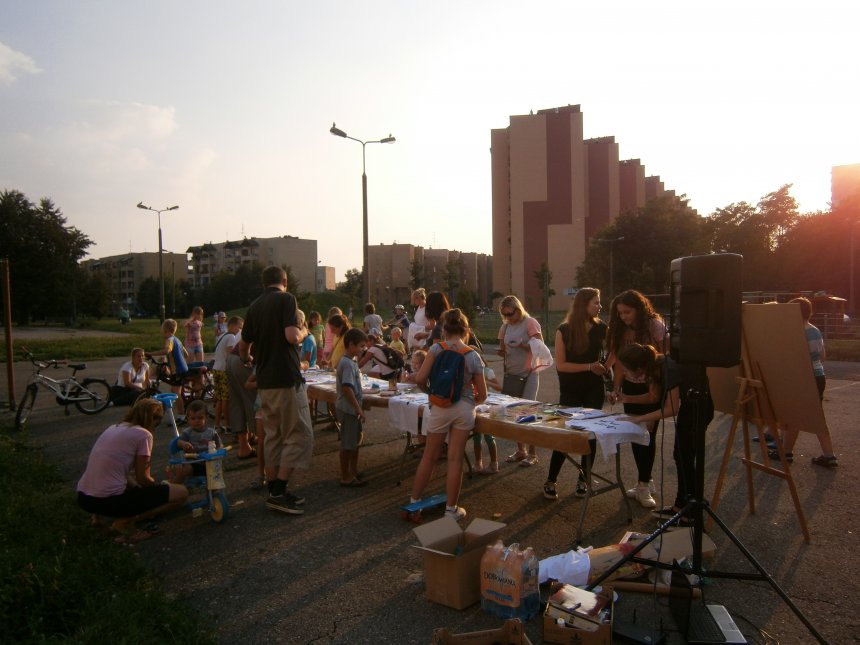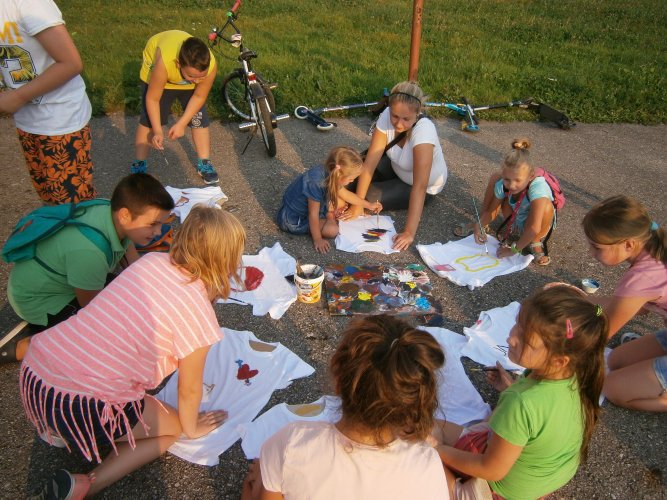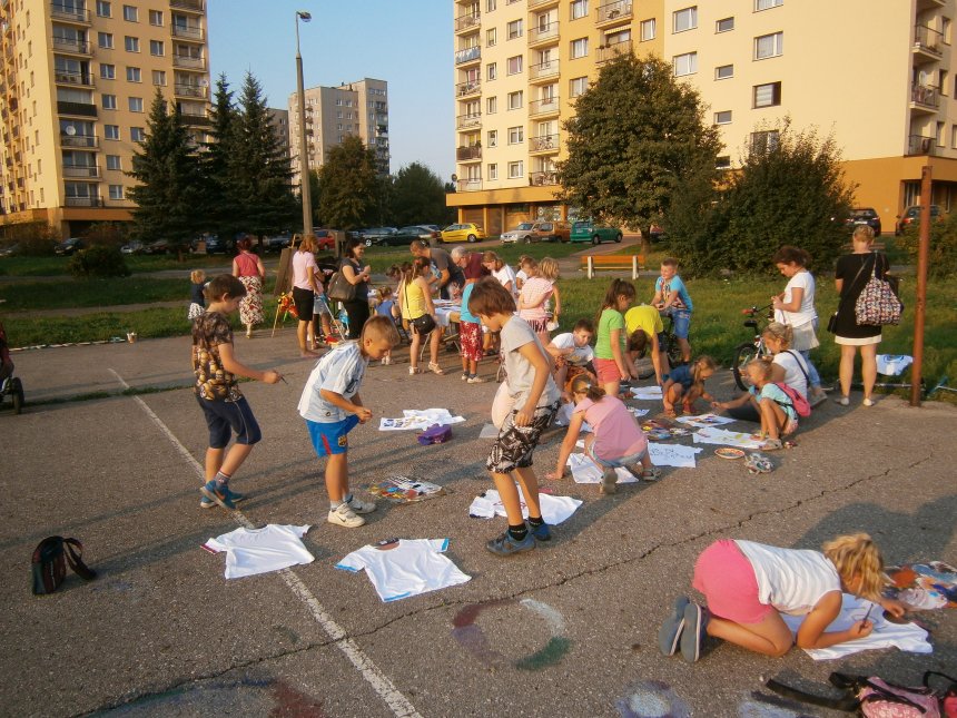 Było kilka już wielokrotnie sprawdzonych atrakcji dla najmłodszych. Przy muzyce dzieci malowały na porcelanie, kubkach, talerzach i miseczkach specjalnymi farbami, króre utrwala się wypiekając naczynie w piekarniku. Jak zawsze dużą popularnościa cieszyło się malowanie na koszulkach, oczywiście farbami do tkanin. Przeważała tematyka roślinno-kwiatowa, wzory geometryczne, chłopcy oczywiście malowali koszulki piłkarskie i postacie z gier komputerowych. Malowano też pejzaże, wypisywano imiona i nawet, jak można zobaczyć na zdjęciach wyznania miłosne.