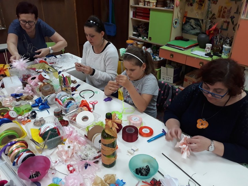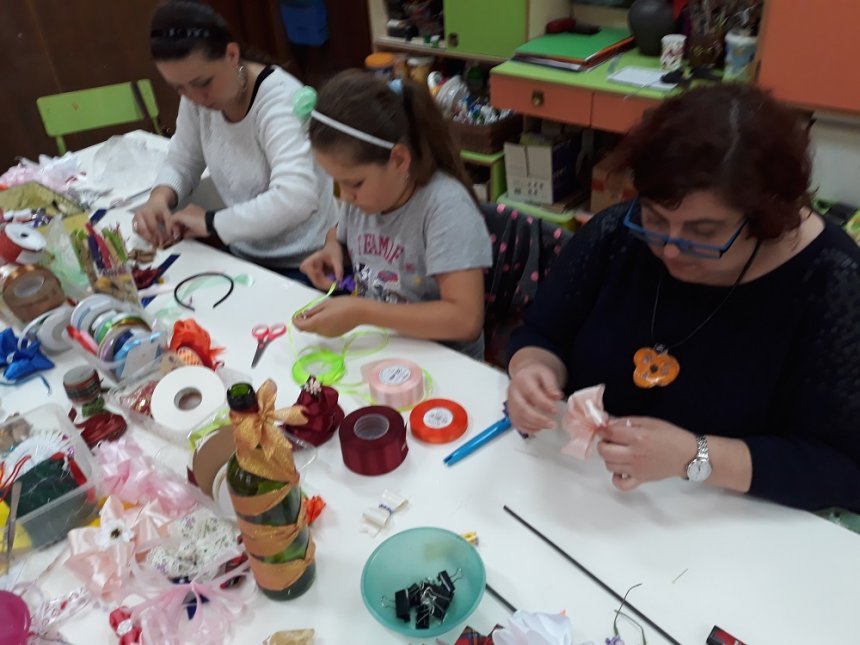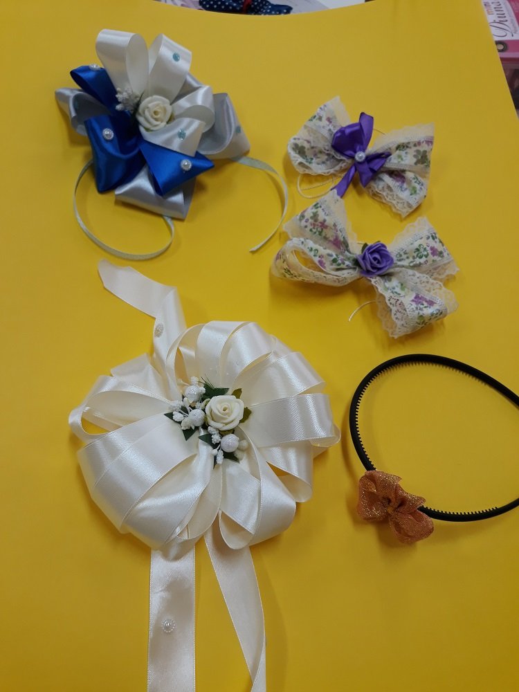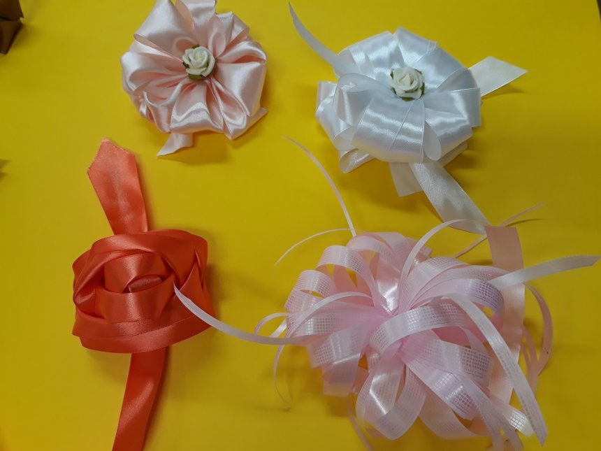 Kokardki małe, duże, z filcu, z wstążek, skóry, z dodatkami lub bez, do prezentu, na opaskę, jako spinka, broszka, dekoracja... W różnorodnych technikach np. na "ósemkę", na widelcu, wokół dłoni, klejone, zszywane, wykręcane. Najważniejsze jednak, że wykonanie ich sprawiło wiele przyjemności uczestniczkom warsztatów artystycznych - Wiosenne trendy z kokardą w Klubie Osiedlowym Helikon.