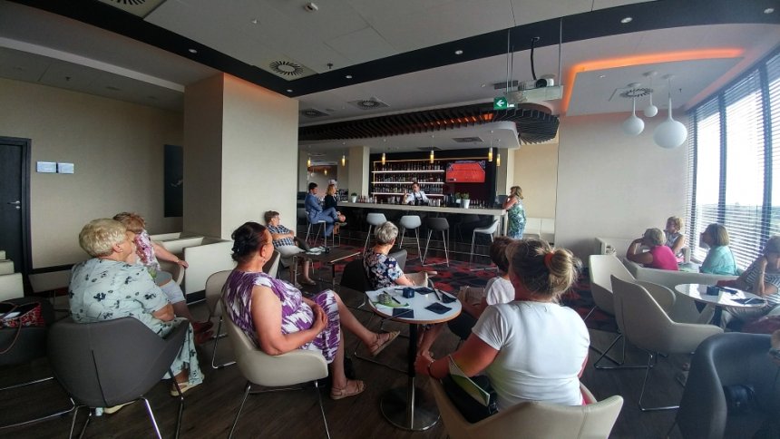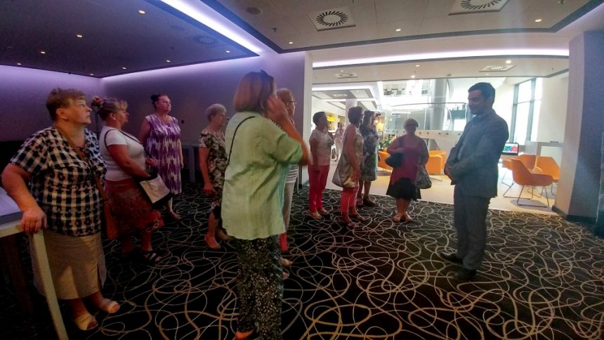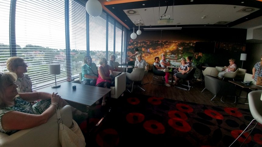 Pod koniec maja, uczestnicy sekcji hobbystycznej UTW - kulinaria - odwiedzili siedzibę Holiday Inn w Dąbrowie Górniczej. W ramach współpracy, pracownicy hotelu oprowadzili gości po kompleksie. Oprócz restauracji i licznych sal, studenci zobaczyli też wyjątkowy apartament VIP na 9. piętrze. Zwieńczeniem wycieczki był pokaz sztuki barmańskiej w Reden Parnorama Bar.
