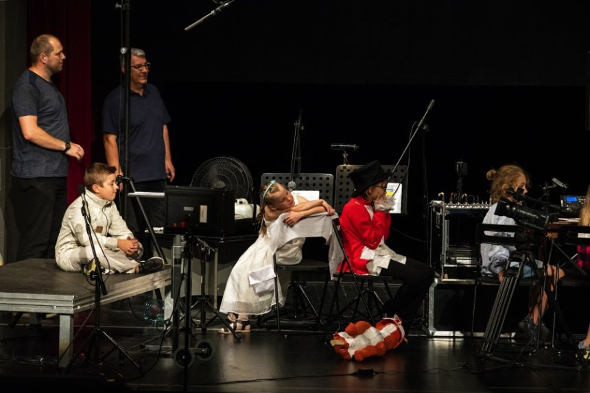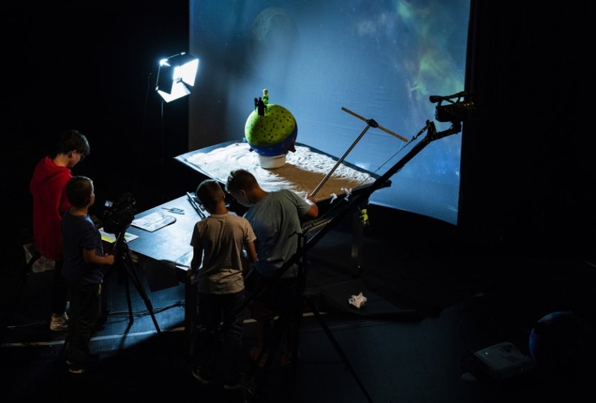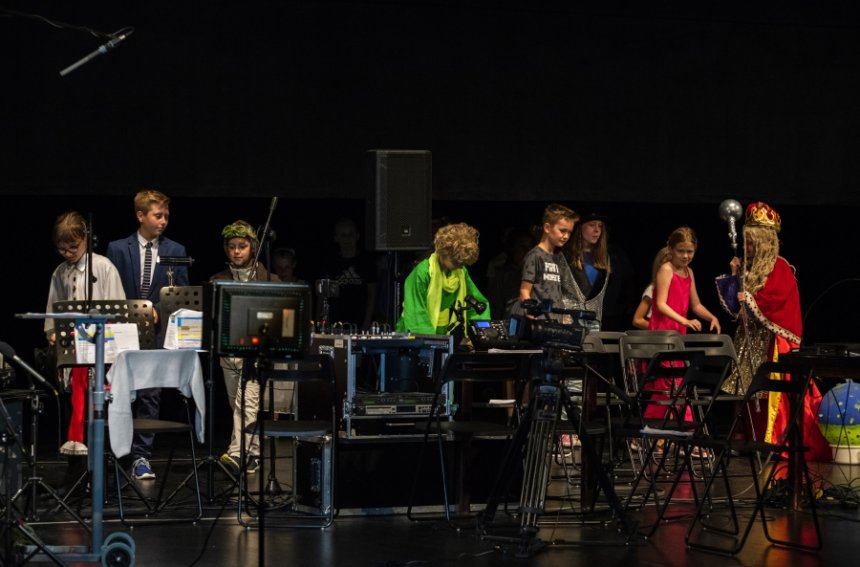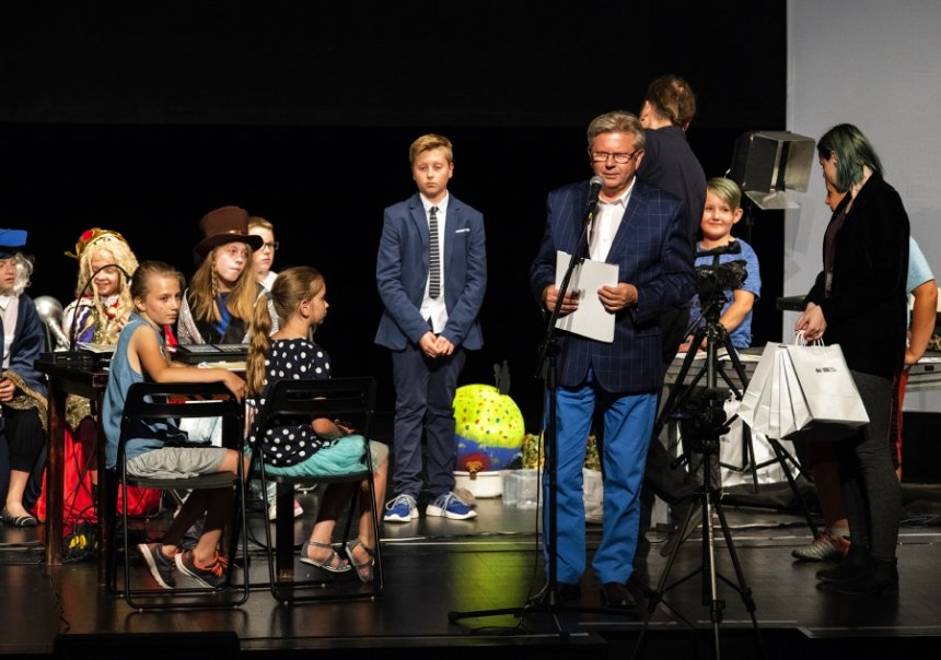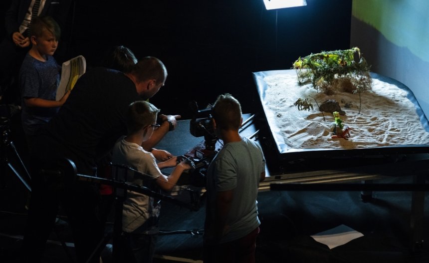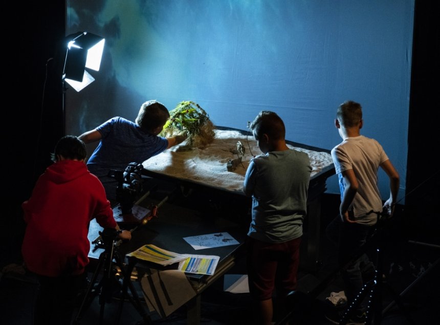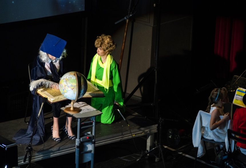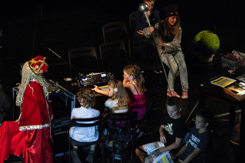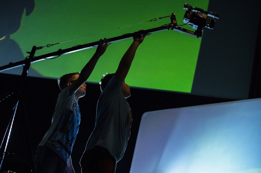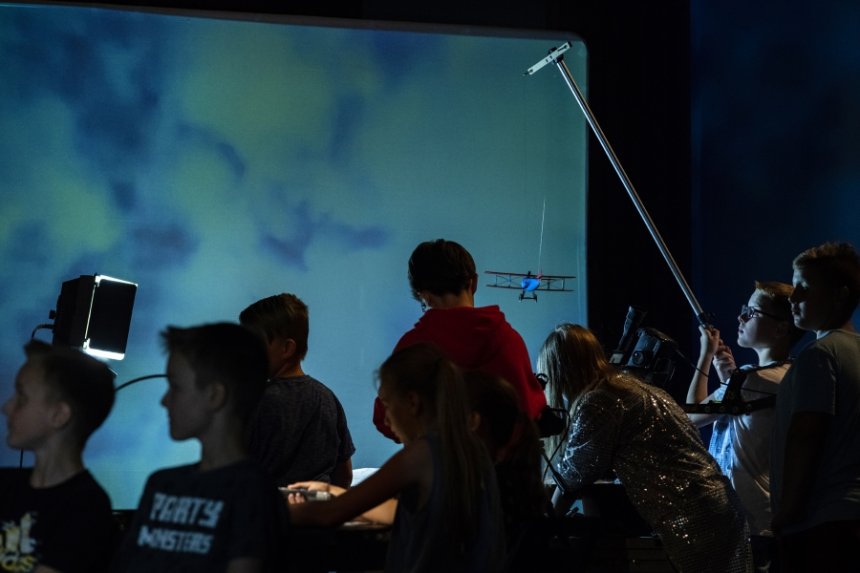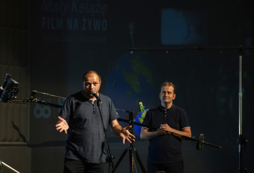 Przez cztery dni, po cztery godziny dziennie, grupa zaciekawionych dzieciaków pracowała nad wyjątkową produkcją w ramach warsztatów filmowych Mały Książę. Podczas zajęć powstały makiety i rekwizyty, a każdy uczestnik wybrał wymarzoną rolę - niekoniecznie aktora. Na scenie zasłanej kablami, projektorami, kamerami i innym sprzętem dumnie zasiedli montażyści, operatorzy kamer i dźwięku, animatorzy i osoby odpowiedzialne za dubbing. W finale, 6 lipca, ta ekspresowa grupa filmowa zaprezentowała unikatowy spektakl w formie obrazu filmowego realizowanego na żywo. Z dumą możemy powiedzieć, że był to wielki sukces! Wszystkim małym adeptom gratulujemy zapału do pracy, kreatywności i współpracy.