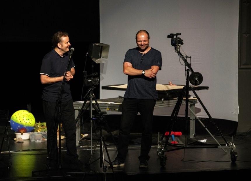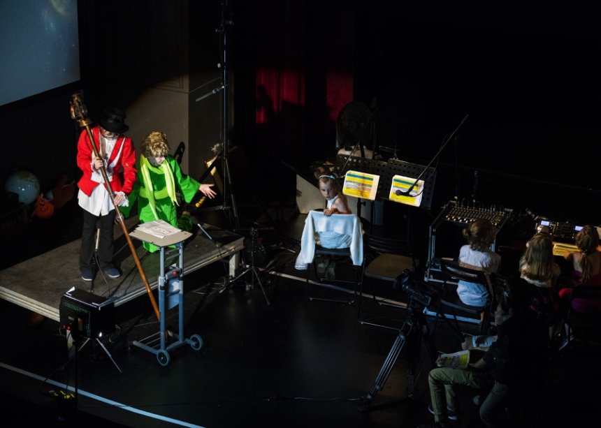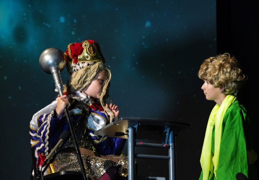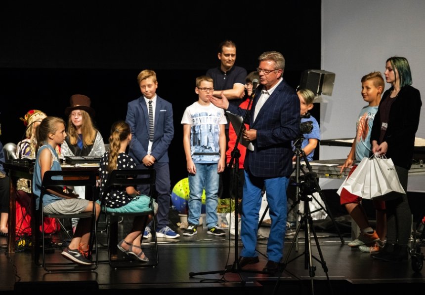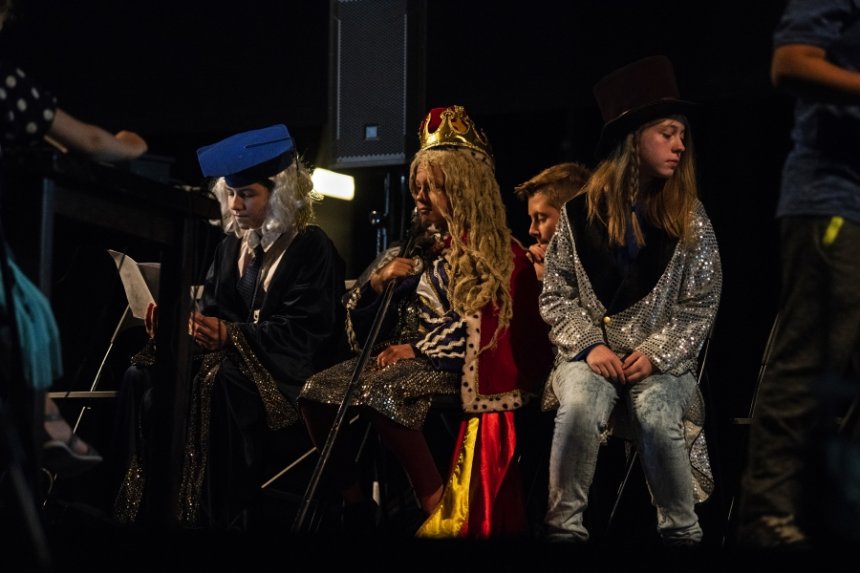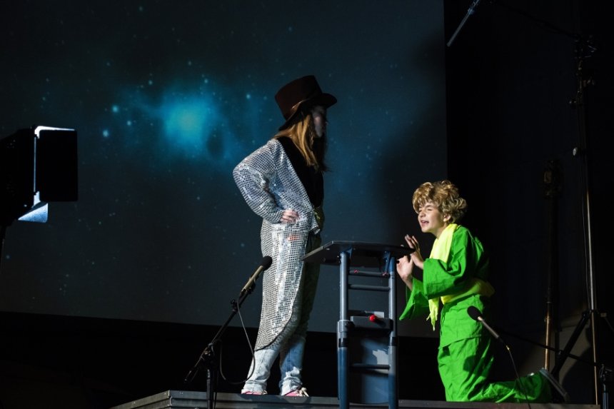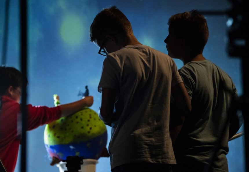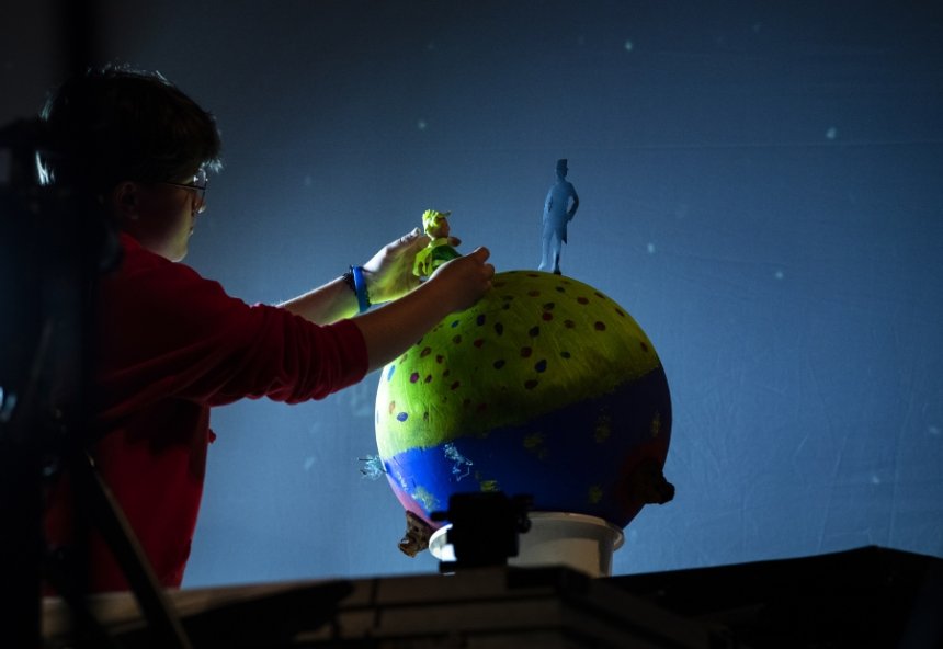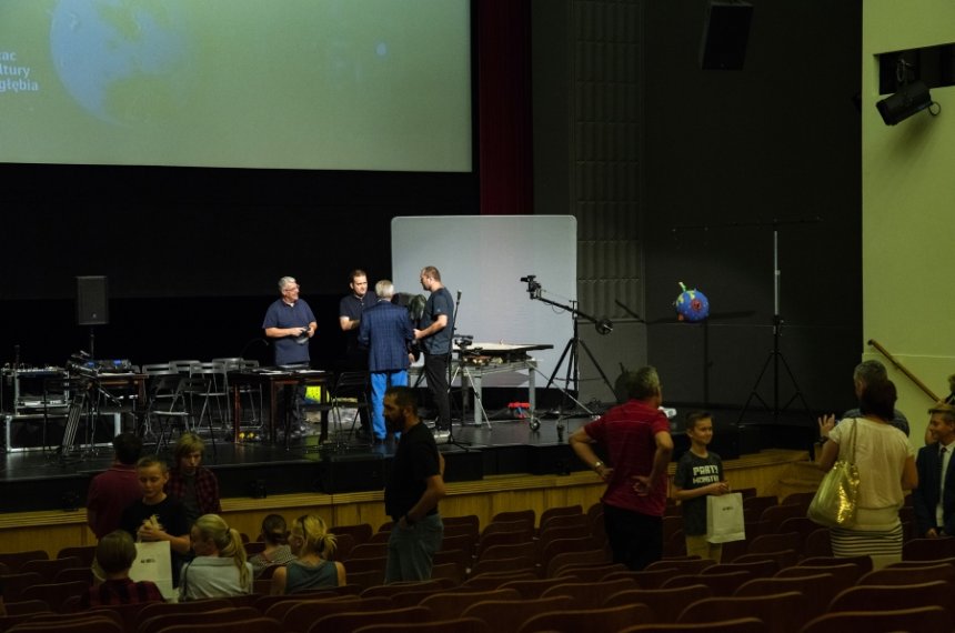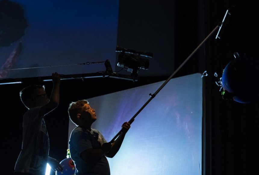 Przez cztery dni, po cztery godziny dziennie, grupa zaciekawionych dzieciaków pracowała nad wyjątkową produkcją w ramach warsztatów filmowych Mały Książę. Podczas zajęć powstały makiety i rekwizyty, a każdy uczestnik wybrał wymarzoną rolę - niekoniecznie aktora. Na scenie zasłanej kablami, projektorami, kamerami i innym sprzętem dumnie zasiedli montażyści, operatorzy kamer i dźwięku, animatorzy i osoby odpowiedzialne za dubbing. W finale, 6 lipca, ta ekspresowa grupa filmowa zaprezentowała unikatowy spektakl w formie obrazu filmowego realizowanego na żywo. Z dumą możemy powiedzieć, że był to wielki sukces! Wszystkim małym adeptom gratulujemy zapału do pracy, kreatywności i współpracy.