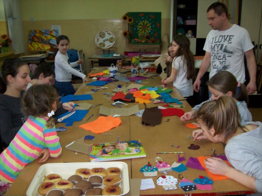 Z okazji zbliżającego się Dnia Muffinki w Świetlicy Środowiskowej w Strzemieszycach Małych wszyscy chętni mogli wziąć udział w muffinkowych warsztatach plastycznych. Nie brakowało twórczego działania, mnóstwa kreatywnych pomysłów i dobrej zabawy. Każdy uczestnik miał za zadanie wykonać ozdoby w kształcie małej, pysznej, lukrowanej babeczki. Oj, działo się! Kreatywna mania ogarnęła całą świetlicę. Słodkie święto przypieczętowały łakocie, przygotowane specjalnie na tę okzazję, przez instruktora.