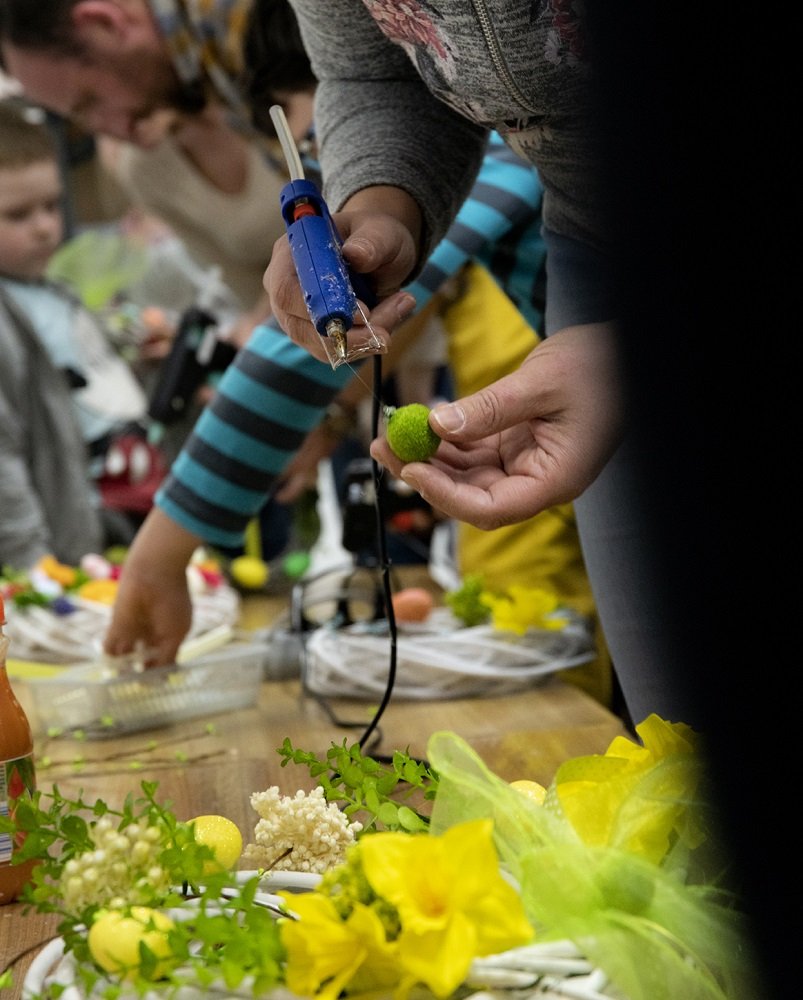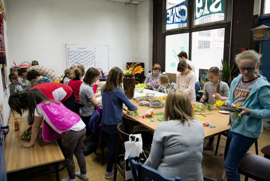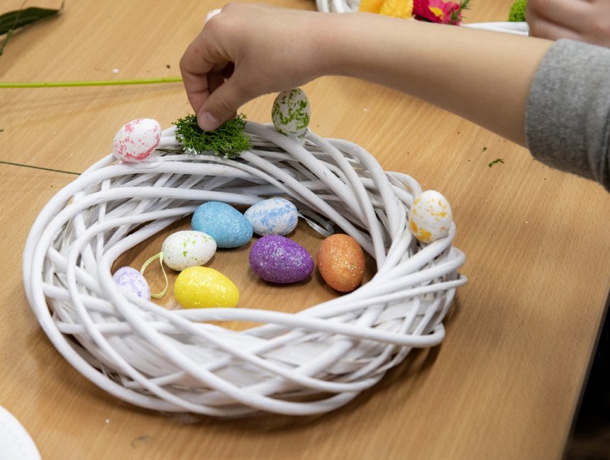 W okresie przedświątecznym Klub Osiedlowy Krąg zorganizował warsztaty Wielkanocne wianki. Przez ponad godzinę panował twórczy szał. W ruch poszły kwiaty, jajka, zajączki, baranki, kurczaczki i wszystko, co kojarzyło się z Wielkanocą i wiosną. Dominowały żywe kolory, a wyobraźnia uczestników sięgnęła zenitu. Efekty przeszły najśmielsze oczekiwania twórców i organizatorów.
