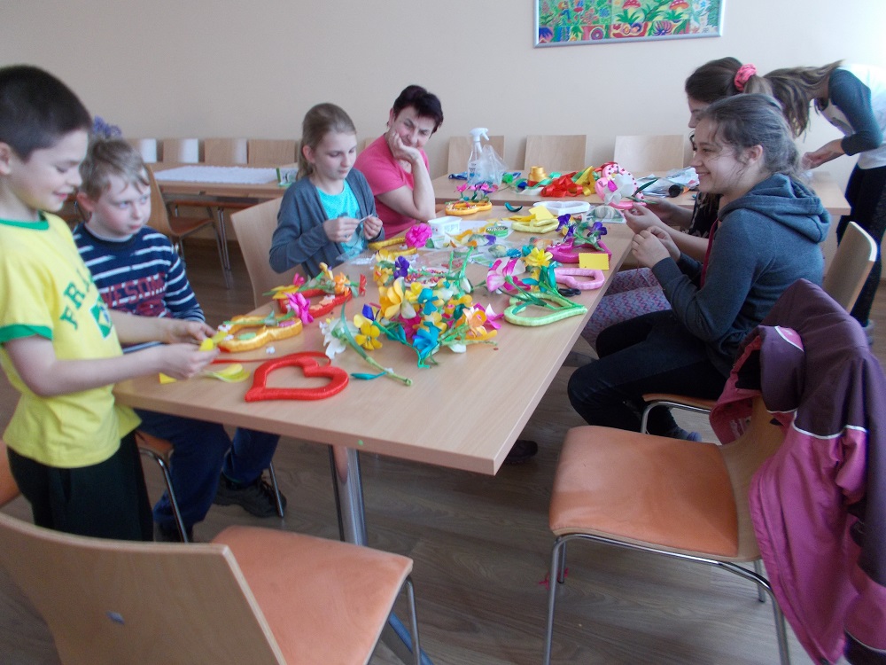 19 maja 2016r. w Świetlicy Środowiskowej w Kuźniczce Nowej na warsztatach osikowych dzieci miały okazję wykazać się artystycznie oraz poczuć wspaniałą atmosferę twórczej pracy z kwiatami.