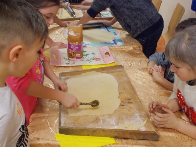 Ostatkowe Warsztaty Kulinarne odbyły się w Świetlicy Środowiskowej w Kuźniczce Nowej (w ramach współpracy ze Świetlicami Środowiskowymi z Rud i Okradzionowa). Panie z Koła Gospodyń Wiejskich jak zawsze wykazały się ogromnym sercem we współpracy z dziećmi. Przygotowały produkty i przybory niezbędne do wysmażenia faworków, a zieci bawiły się wyśmienicie wyrabiając te ostatkowe smakołyki. Prócz wypieków był też czas na pyszną zabawę - dzieci wybierały ze Skrzyni Gospodyni ukryte w niej stroje karnawałowe, w których prezentowały się do końca warsztatów. Nie zabrakło też konkursów, a śmiechom i radości nie było końca.