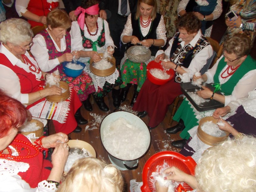 17 lutego 2015 r., a więc tradycyjnego „śledzika”, Koła Gospodyń Wiejskich spędziły na Wyszkubku, który rozpoczyna w naszym mieście rok obrzędowy. Nie zabrakło na nim rywalizacji, bo gospodynie (nie tylko) musiały drzeć pierze, malować poszewki na poduszki – i tu mogły puścić wodze swej fantazji… Kwiaty, koguty i inne ludowe wzory królowały. Mistrzyniami Wyszkubku zostały Panie z KGW Okradzionów.