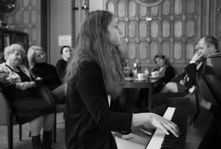 Świętowanie rozpoczęliśmy o g. 16:00, wtedy przy klawiaturze pianina w pałacowej kawiarni zasiadła młoda, lecz ogromnie utalentowana Hania Derej - pianistka, kompozytorka i dyrygentka, mająca zaledwie 15 lat. Pomimo wieku na swoim koncie ma już 4 studyjne albumy z własnymi kompozycjami na fortepian. Wystąpiła w ramach cyklu Kawiarniane PianoLove, zaczarowując gości Kawiarni Pałacowej. – Jeszcze nigdy, podczas żadnego występu cyklu, kawiarniane pianino nie brzmiało tak subtelnie i delikatnie – skomentował prezentację jeden ze stałych bywalców występów pianistycznych do kawy. Hania niewątpliwie ma wielki talent. Trzymamy kciuki, by osiągnęła równie wielki, międzynarodowy sukces.