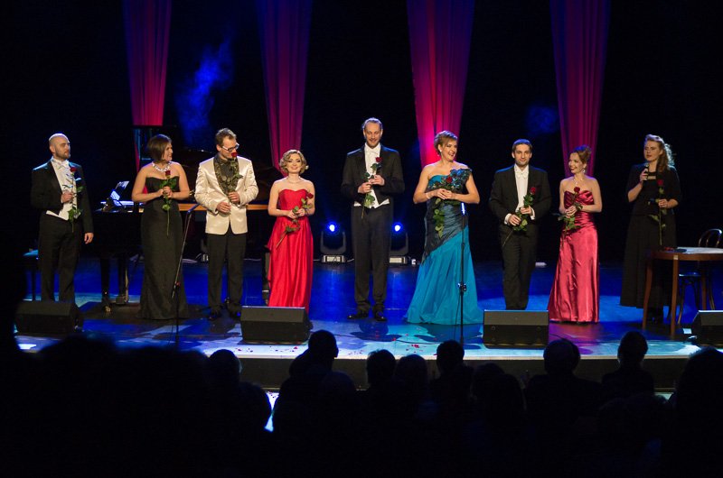 Widowisko tworzyły trzy sopranistki: Agnieszka Drożdżewska, Barbara Spitzer oraz Anna Wilczyńska, Izabela Strzelecka – mezzosopran, Ivo Michl – baryton oraz Leszek Solarski – bas. Galę karnawałową poprowadziła Martyna Witowska z wrocławskiego Teatru Ad Spectatores.
